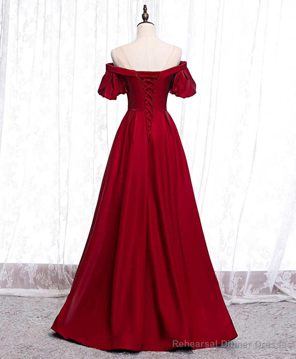 Simple Sweetheart Burgundy Satin Long Prom Dress, Burgundy Formal Graduation Dress
