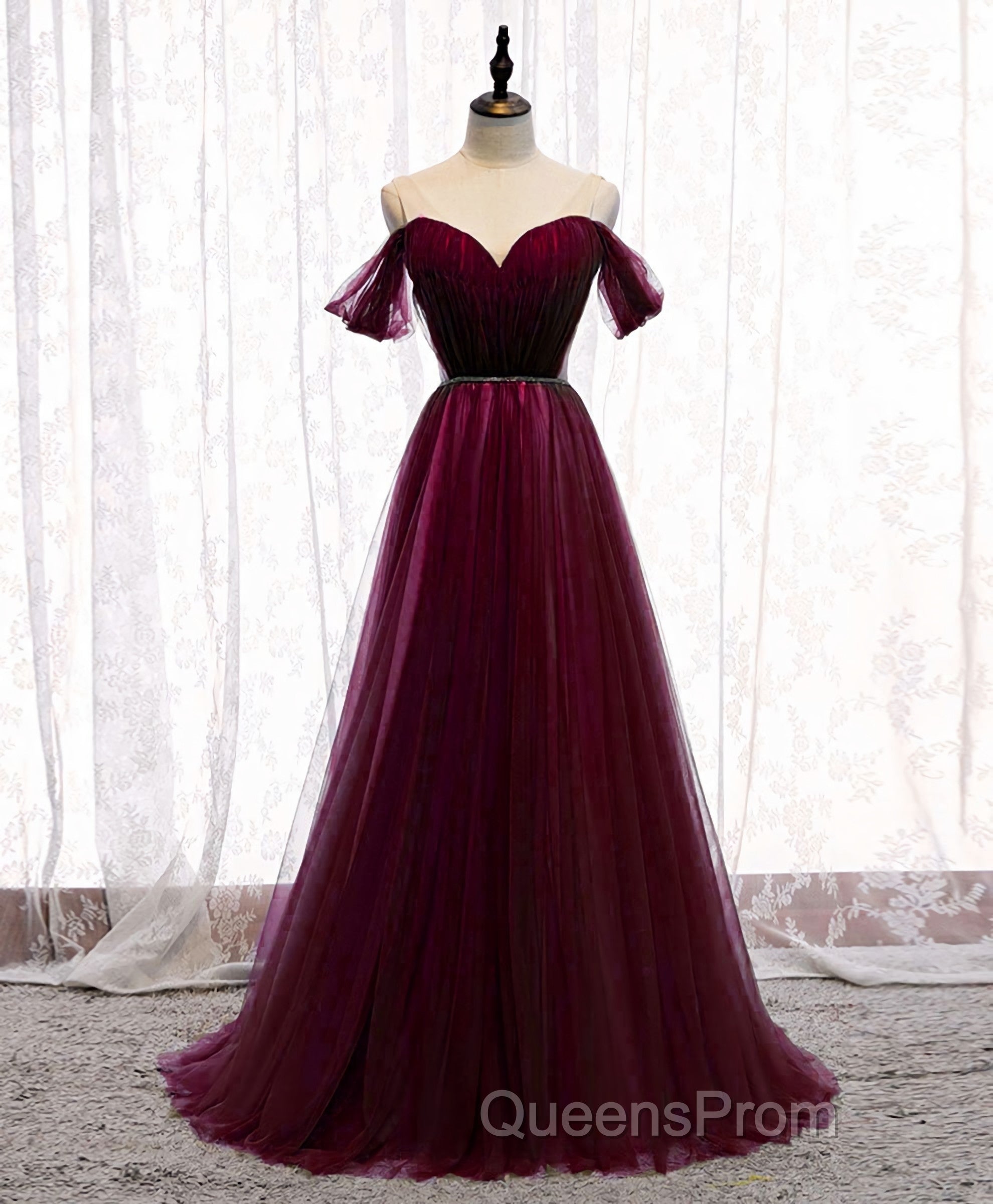 Simple Sweetheart Tulle Off Shoulder Long Evening Prom Dress, Tulle Formal Dress