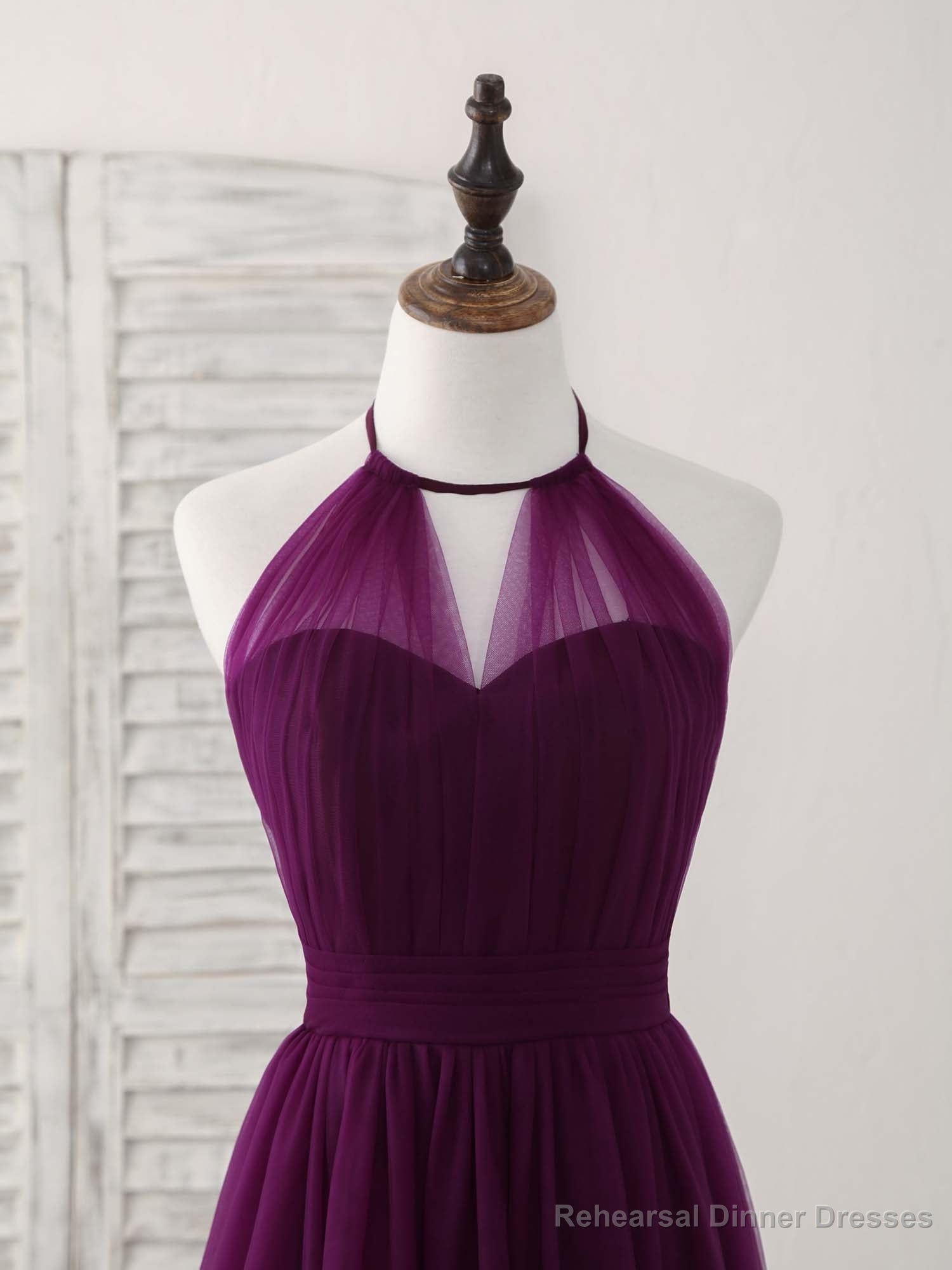 Simple Tulle A-Line Purple Long Prom Dress, Bridesmaid Dress