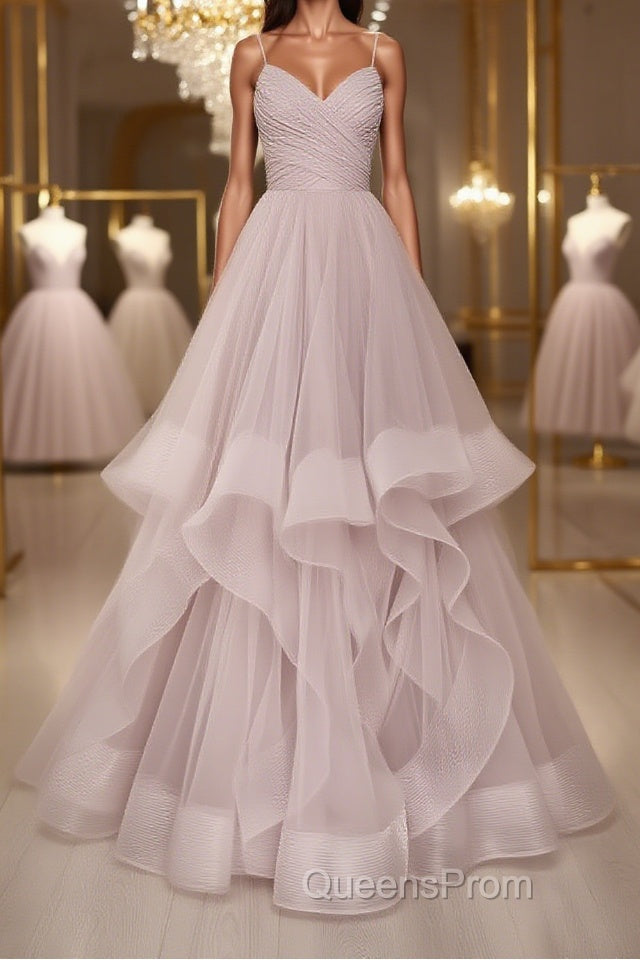 Simple v neck A-line tulle long Evening Prom Dress sweet 16 Dress