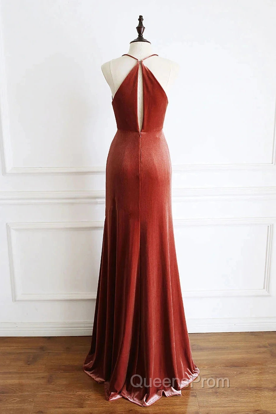 Simple V Neck Velvet Formal Dress Mermaid Long Wedding Guest Dress