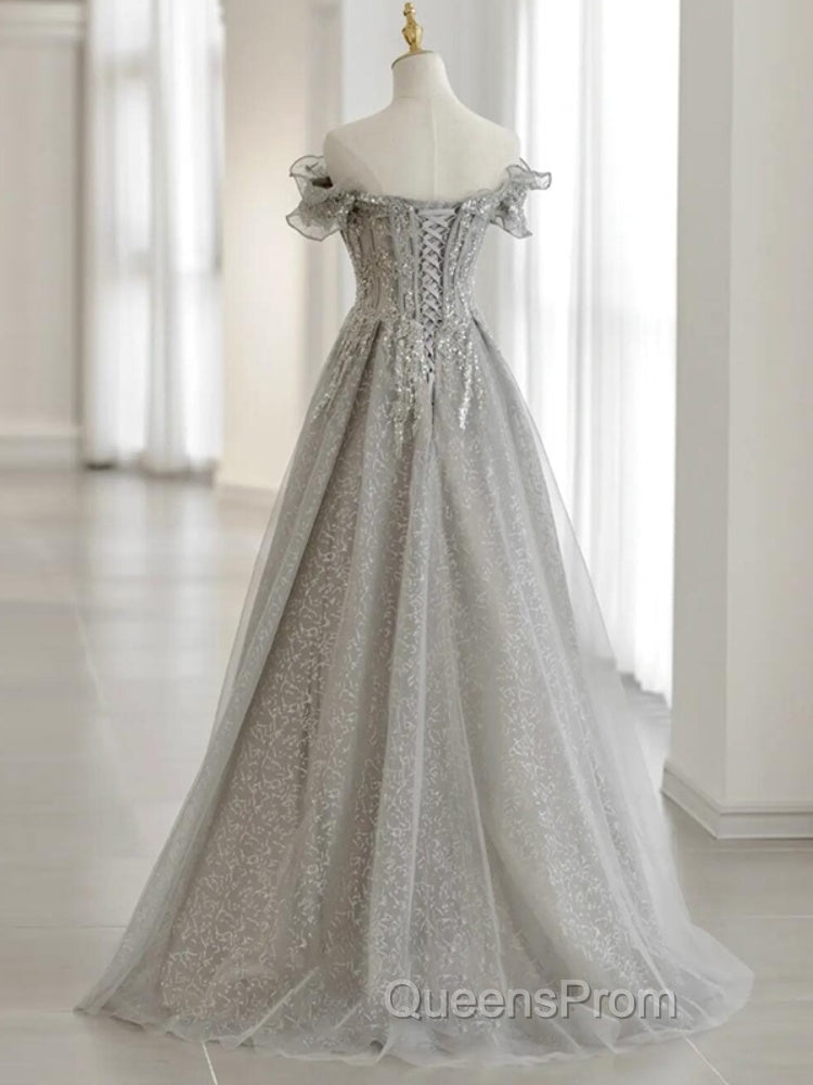 Sliver-Grey Tulle With Sequins Long Party Dress,A-Line Floor Length Evening Prom Dress