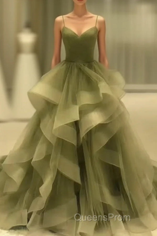 Spaghetti Strap Green A Line Long Evening Prom Dress Formal Evening Gown Party Dress