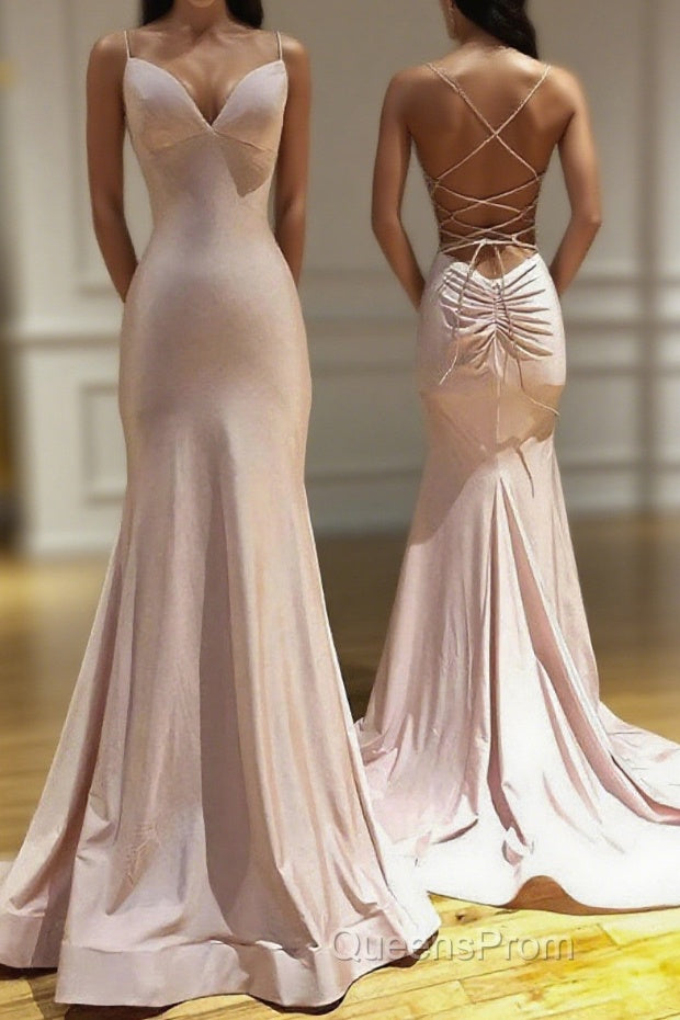 Spaghetti Straps Pink Mermaid Evening Party Dress Long Evening Prom Dress