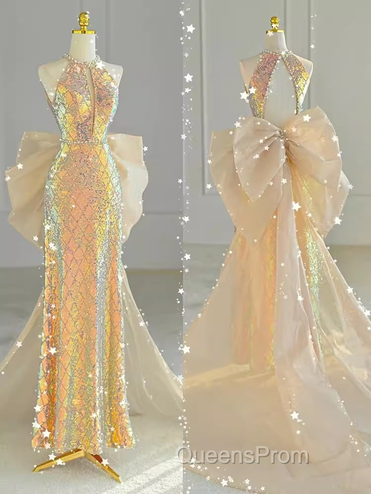Sparkle A Line Scoop Neckline Sequin Gold Long Evening Prom Dress