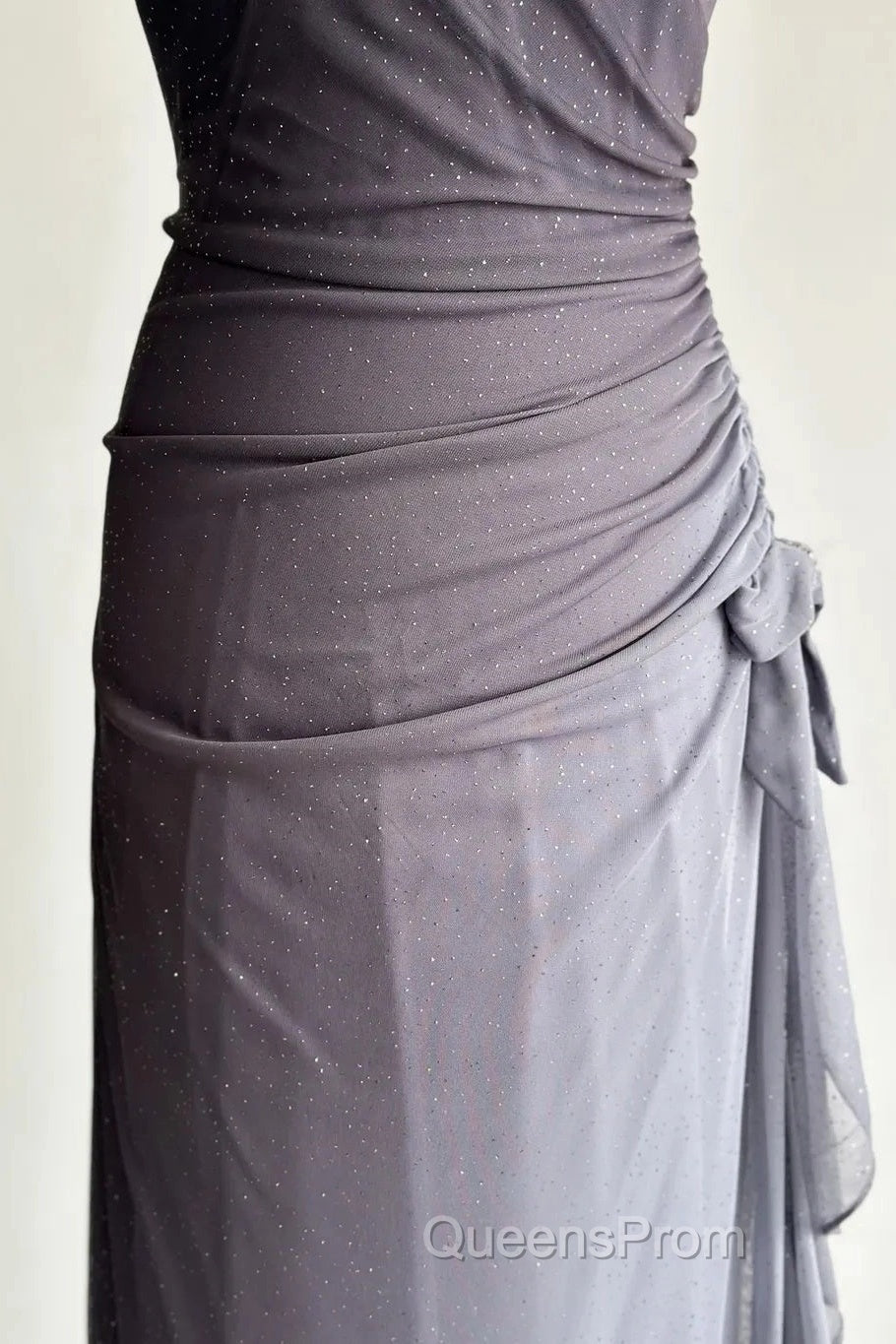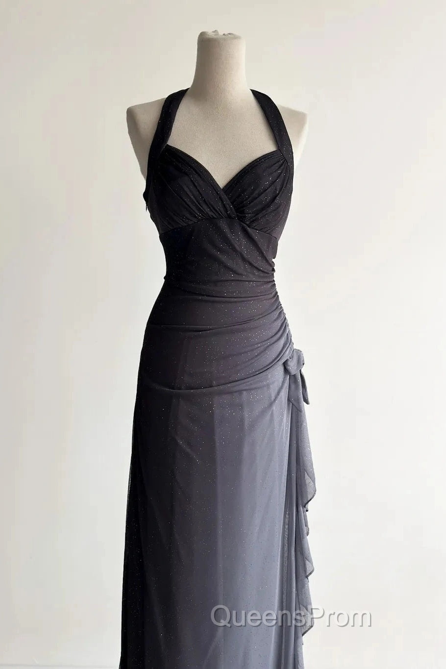 Sparkling Gradient Dark Gray Halter Neck Ruffle Sheath Evening Prom Dress Birthday Dress