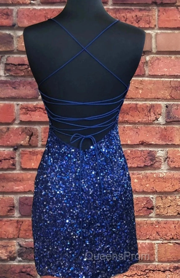 Sparkly Sequin Royal Blue Sheath Homecoming Dress