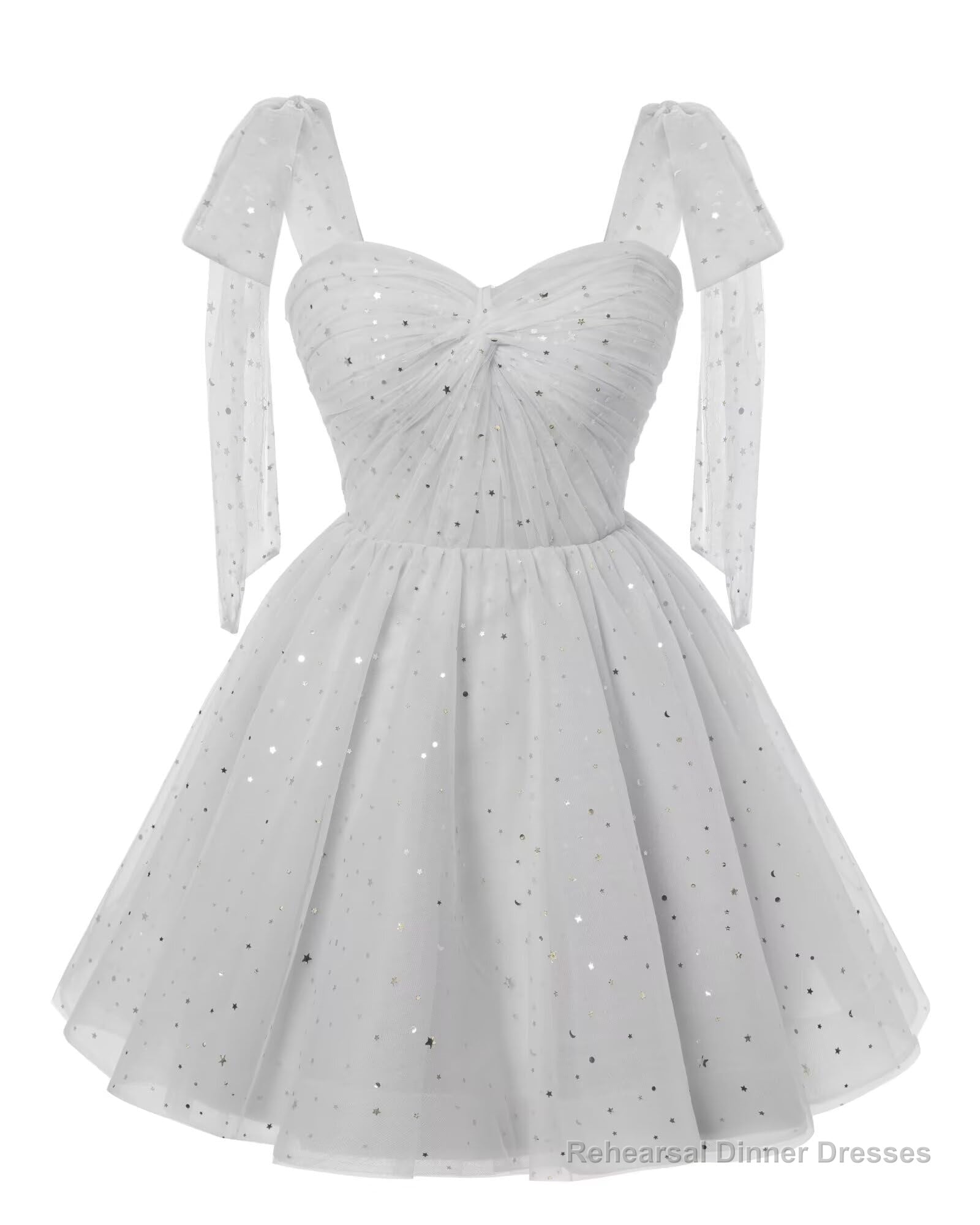 Sparkly Starry Silver Gray Tulle Short Homecoming Dresses Spaghetti Bow Straps Prom Dress Sequin Cocktail Party Dress for Teens