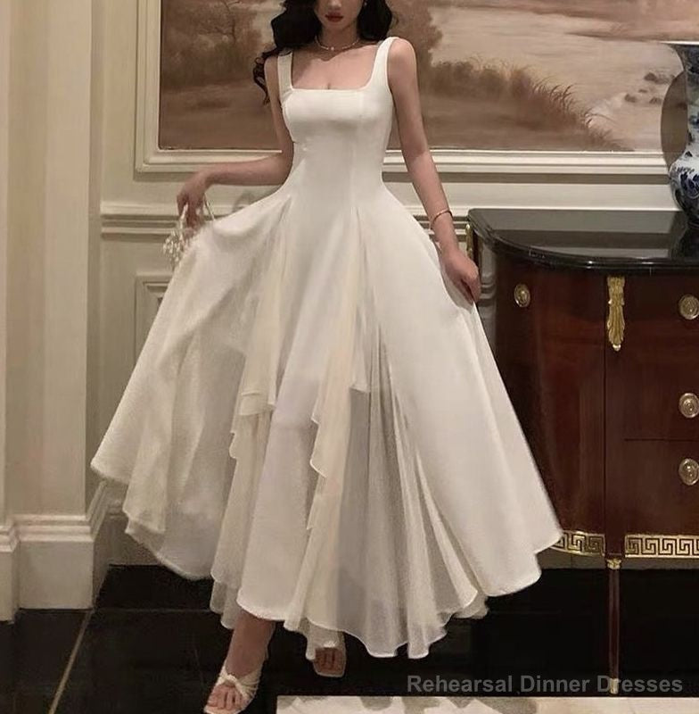 Square Neck White Asymmetric A-Line Long Evening Dress