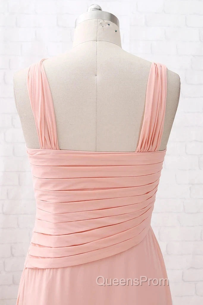 Straps Chiffon Long Bridesmaid Dress Coral Formal Wedding Party Dress