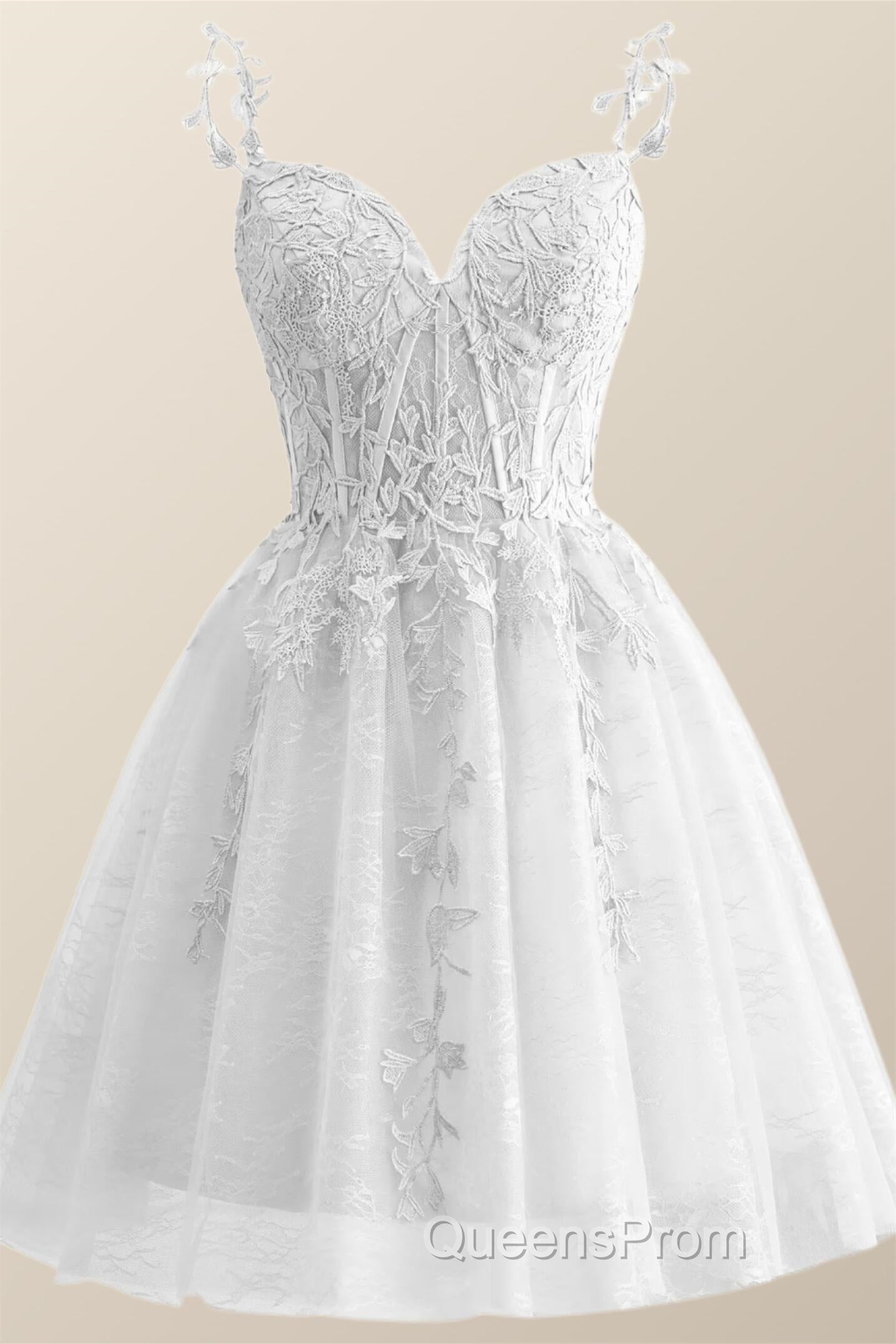 Straps Periwinkle Lace Appliques A-line Short Dress