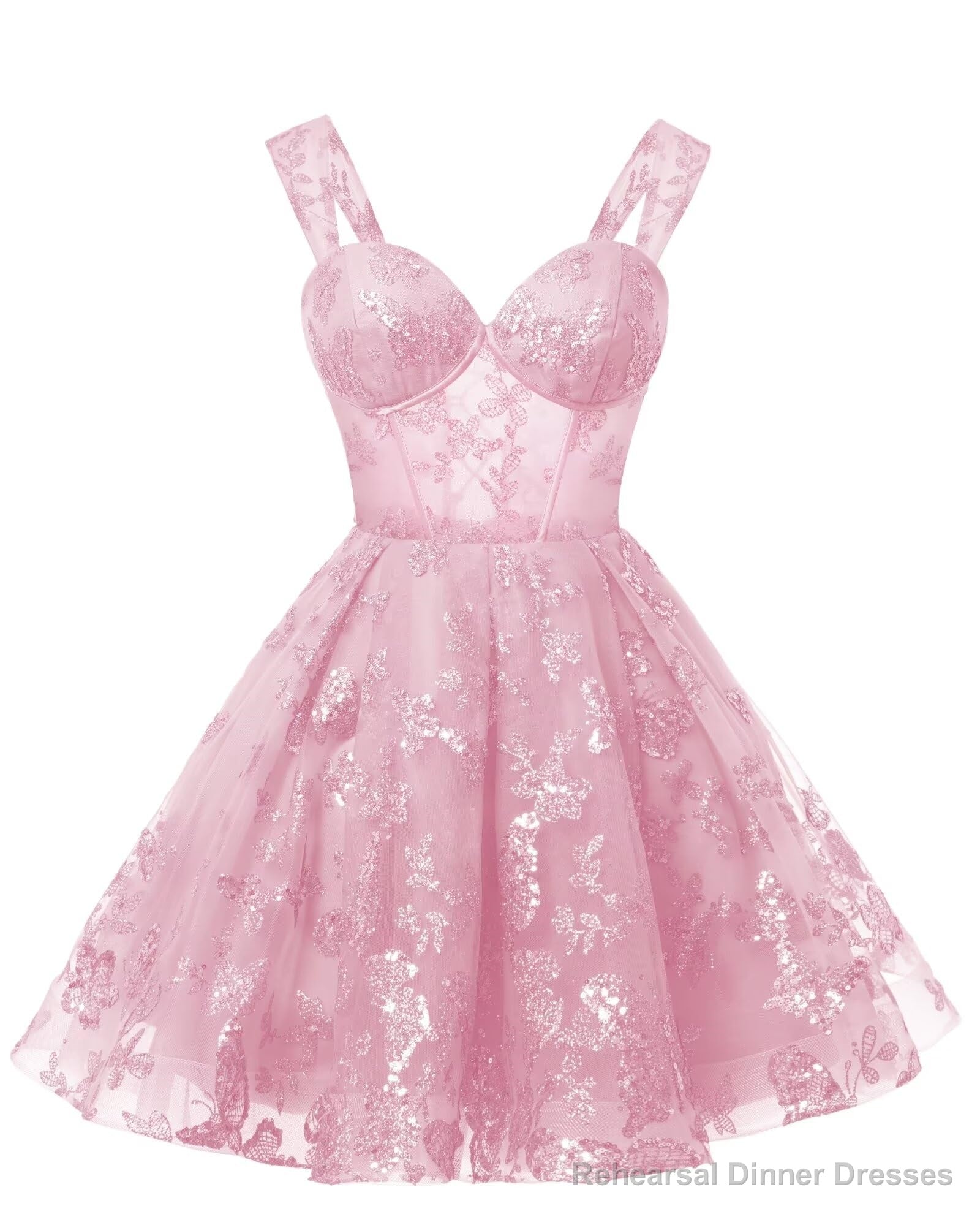 Teens Sparkly Tulle Light PinkHomecoming Dresses Spaghetti Straps Short Cocktail Party Prom Dress
