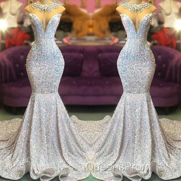Trumpet Mermaid Beading Sequin White Evening Prom Dress