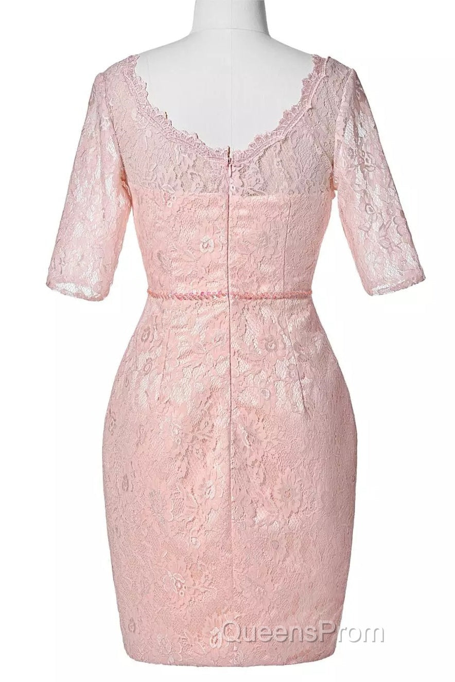 Two-Piece Blush Pink Lace Bodycon Short Mother of the Bride Dress