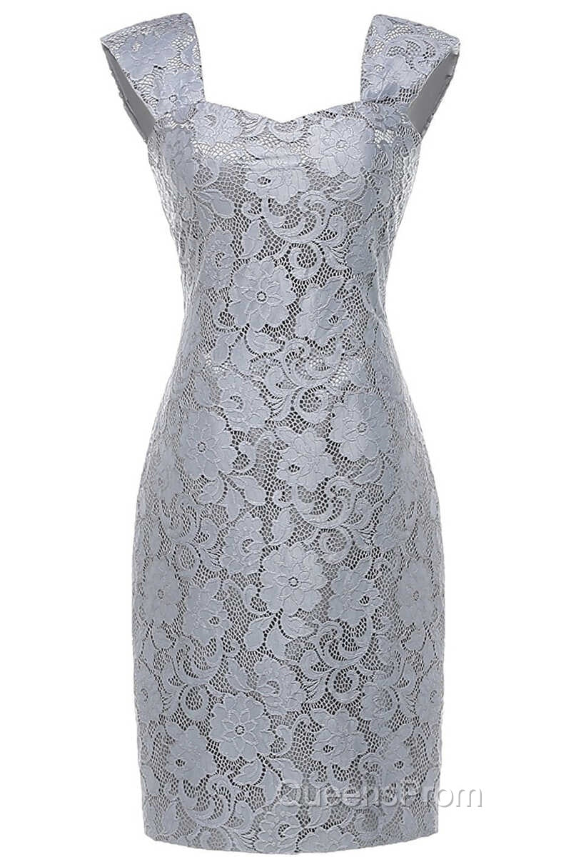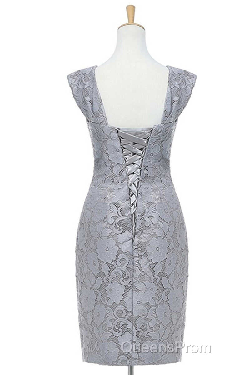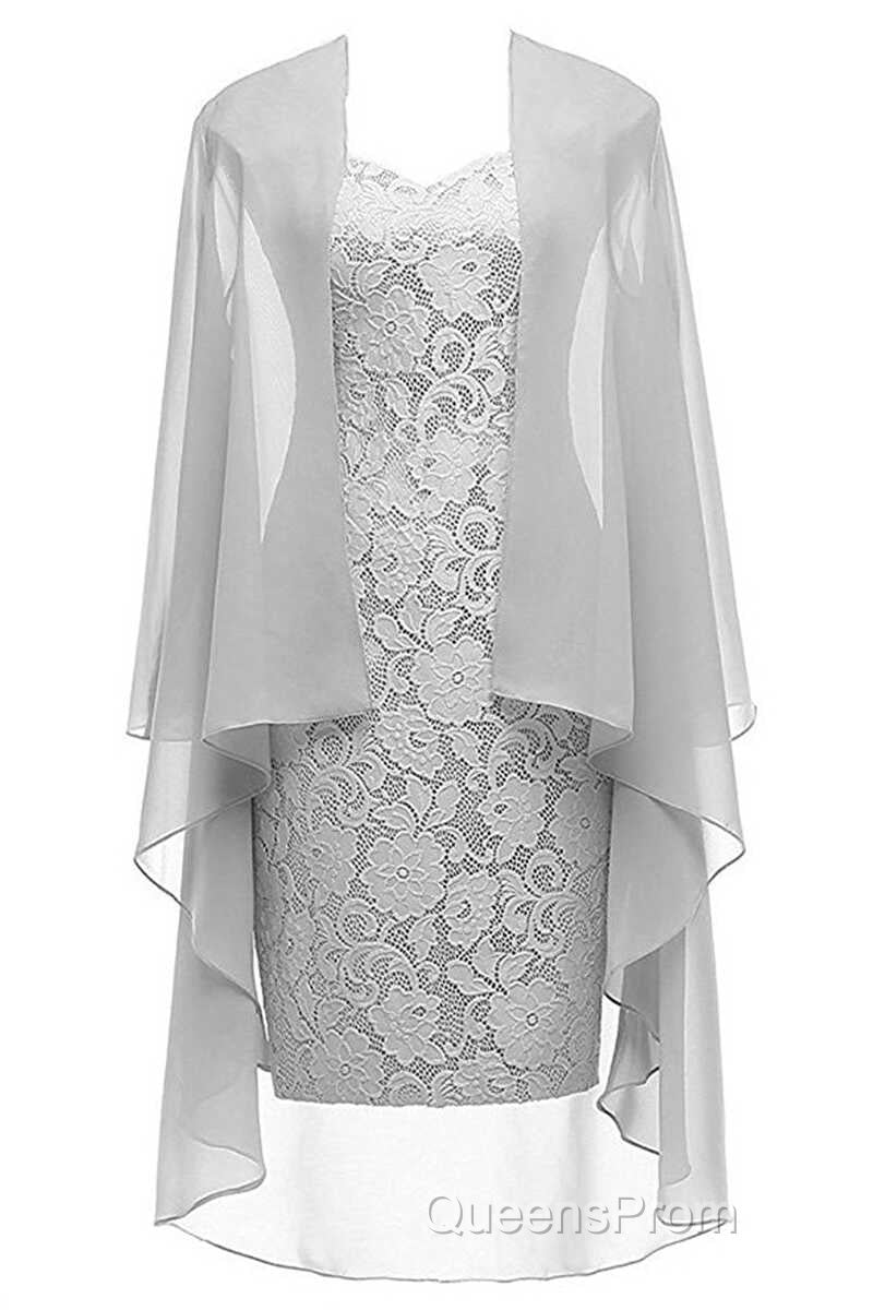 Two-Piece Grey Lace Short Mother of the Bride Dress
