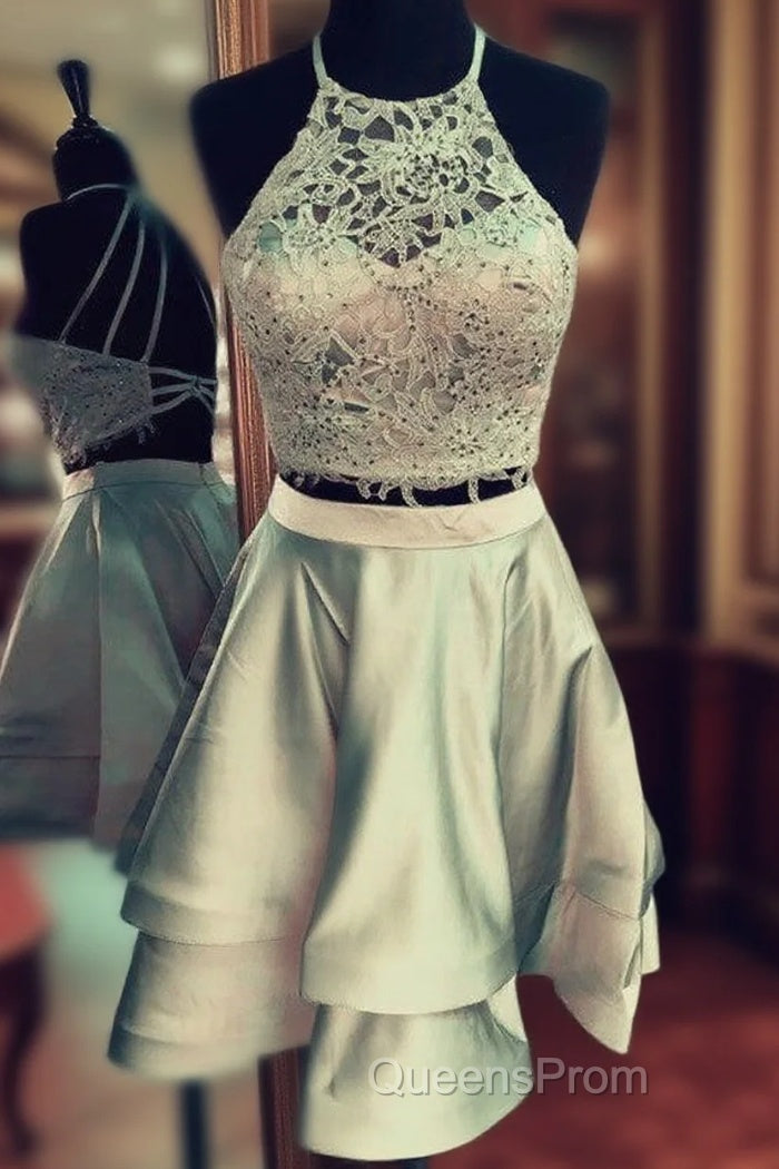Two Piece Homecoming Dress Lace Crop Open Back