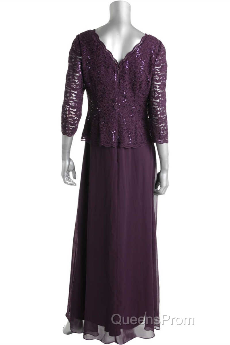 Two-Piece Plum Purple Long Sleeve Long Mother of the Bride Dress