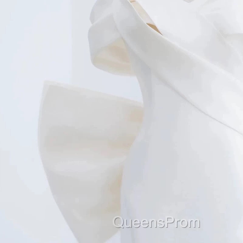 Unique Mermaid Off The Shoulder Long White Satin Wedding Dress