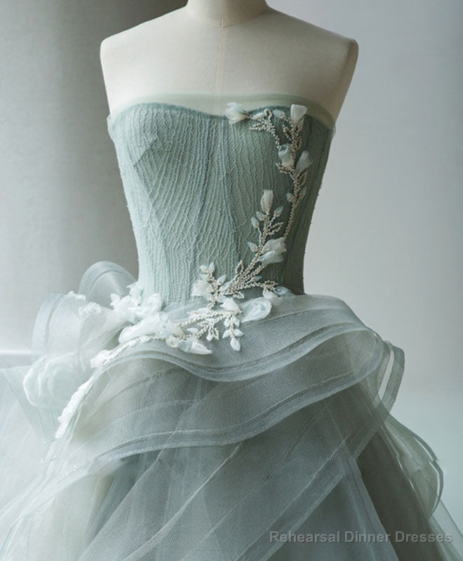 Unique Tulle Lace Gray Green Long Prom Gown, Tulle Lace Evening Dress