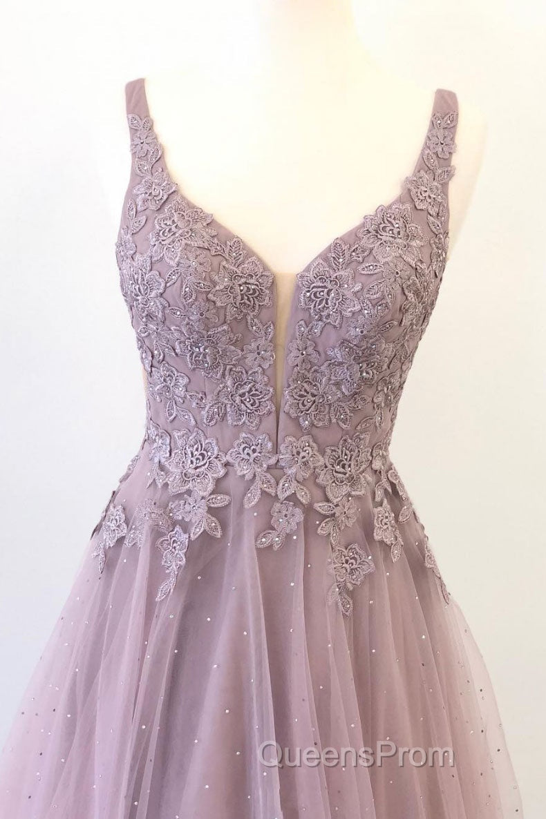 Unique v neck tulle lace long Evening Prom Dress, tulle evening Dress