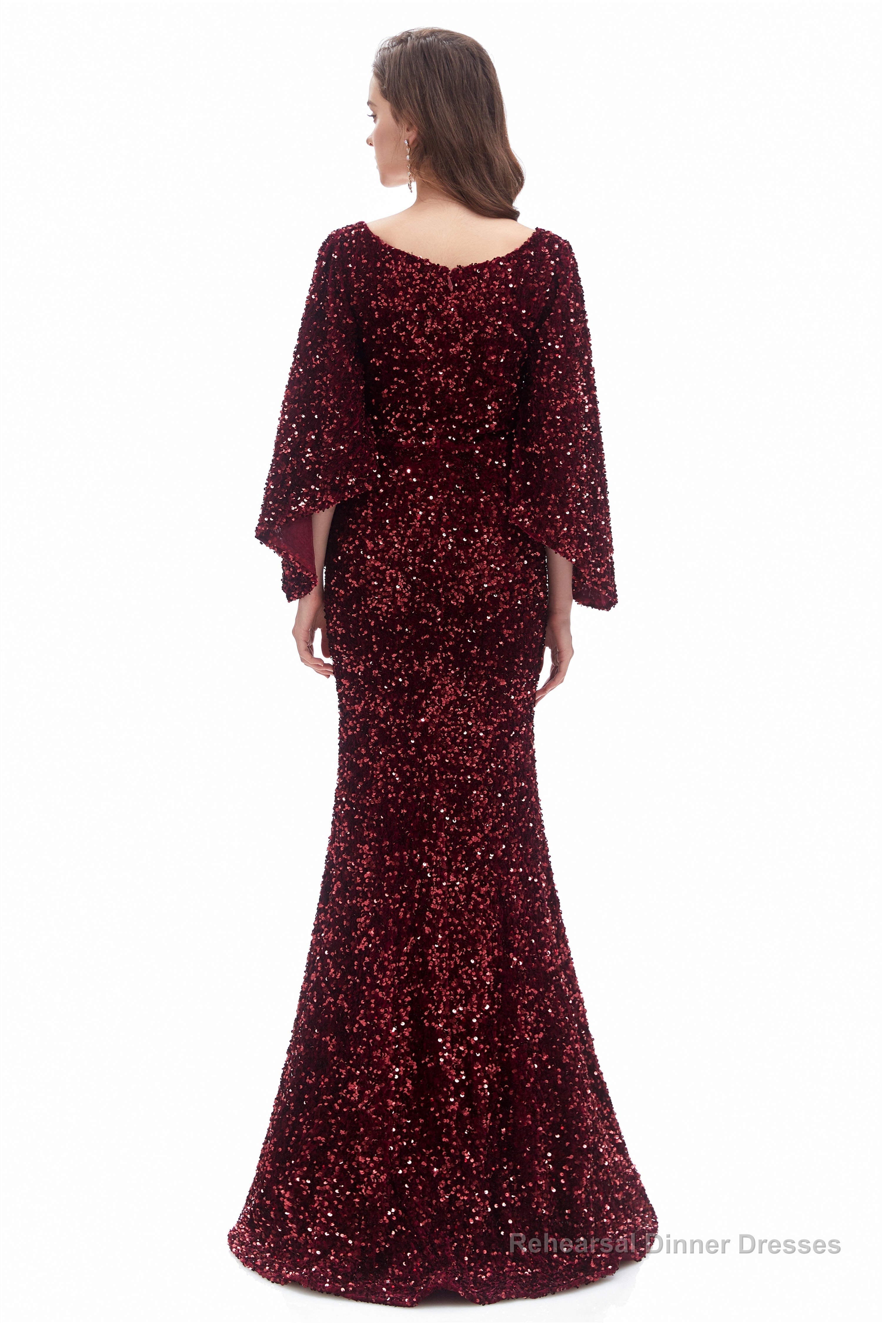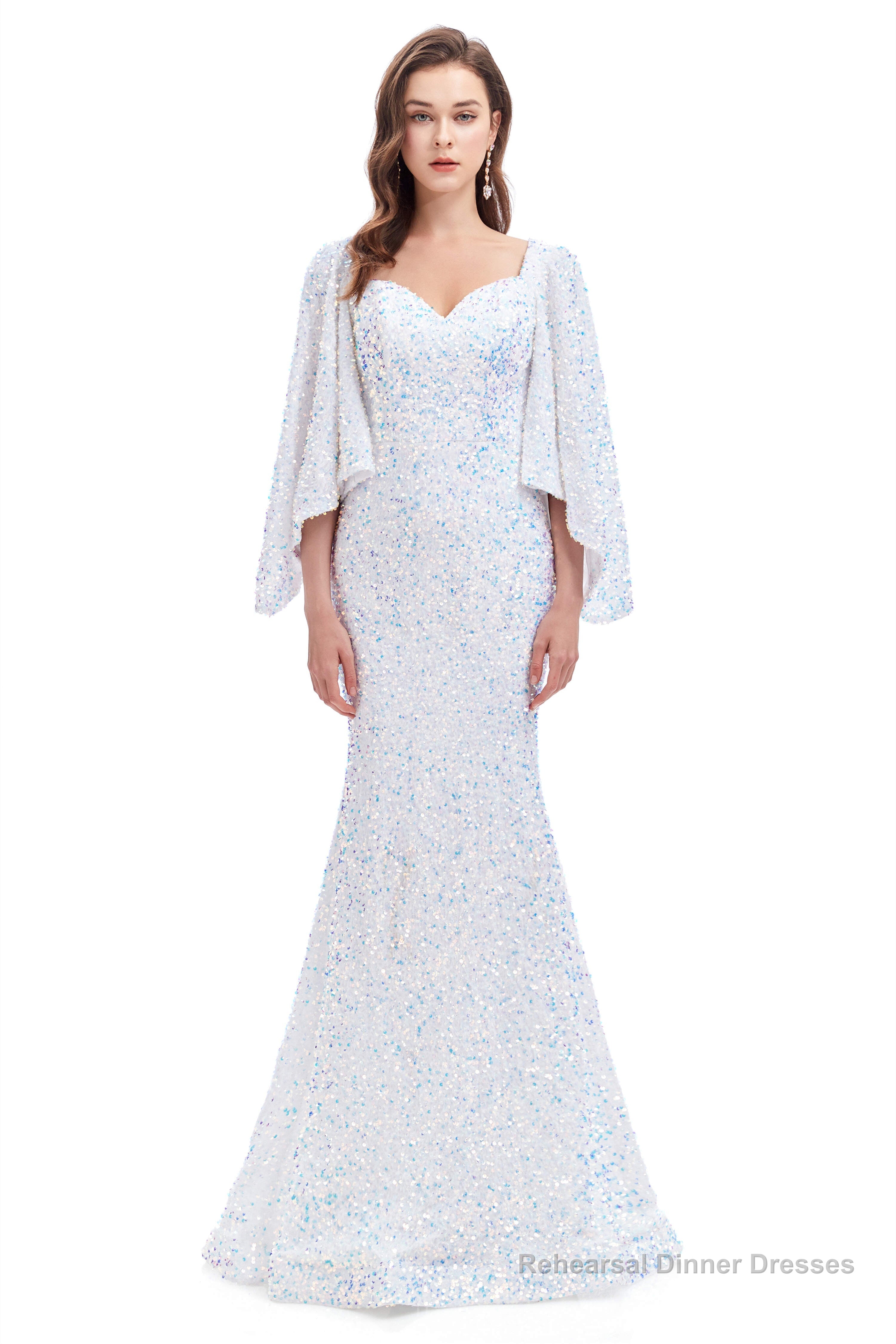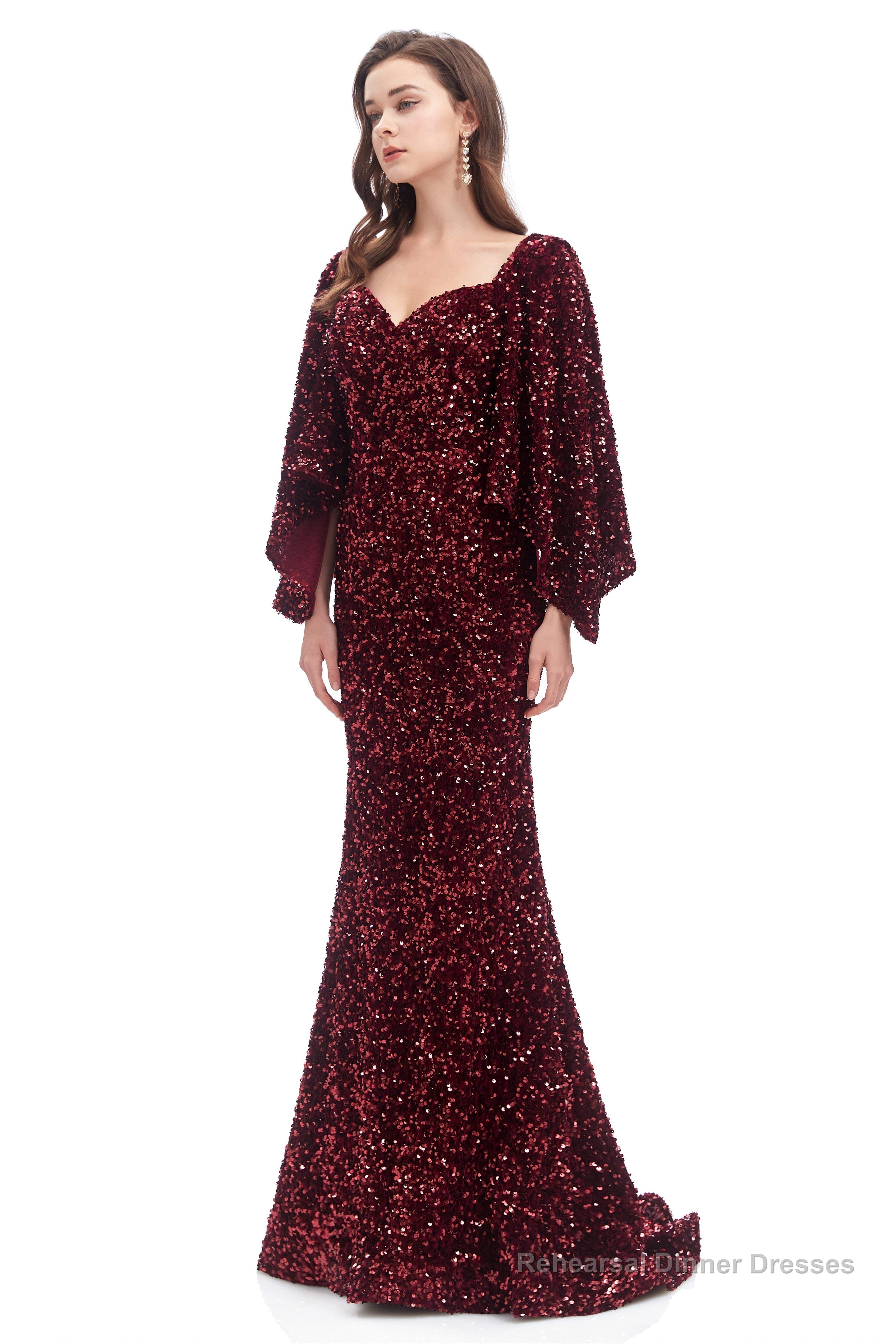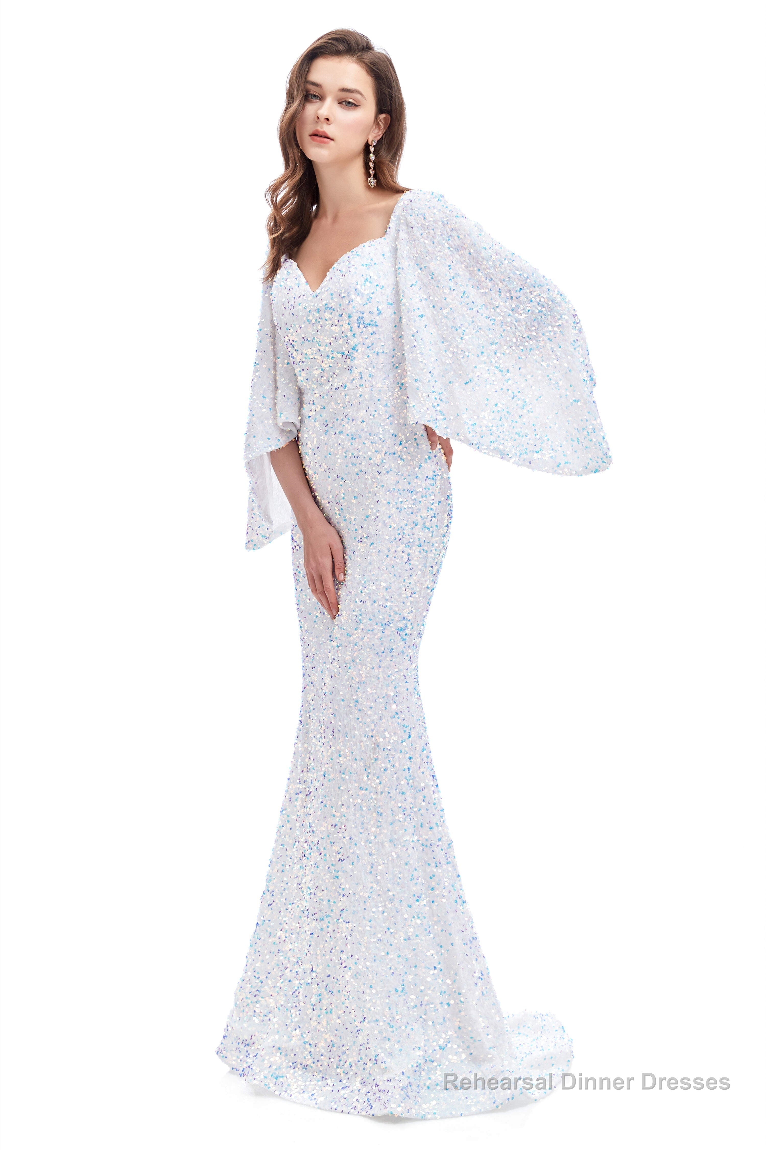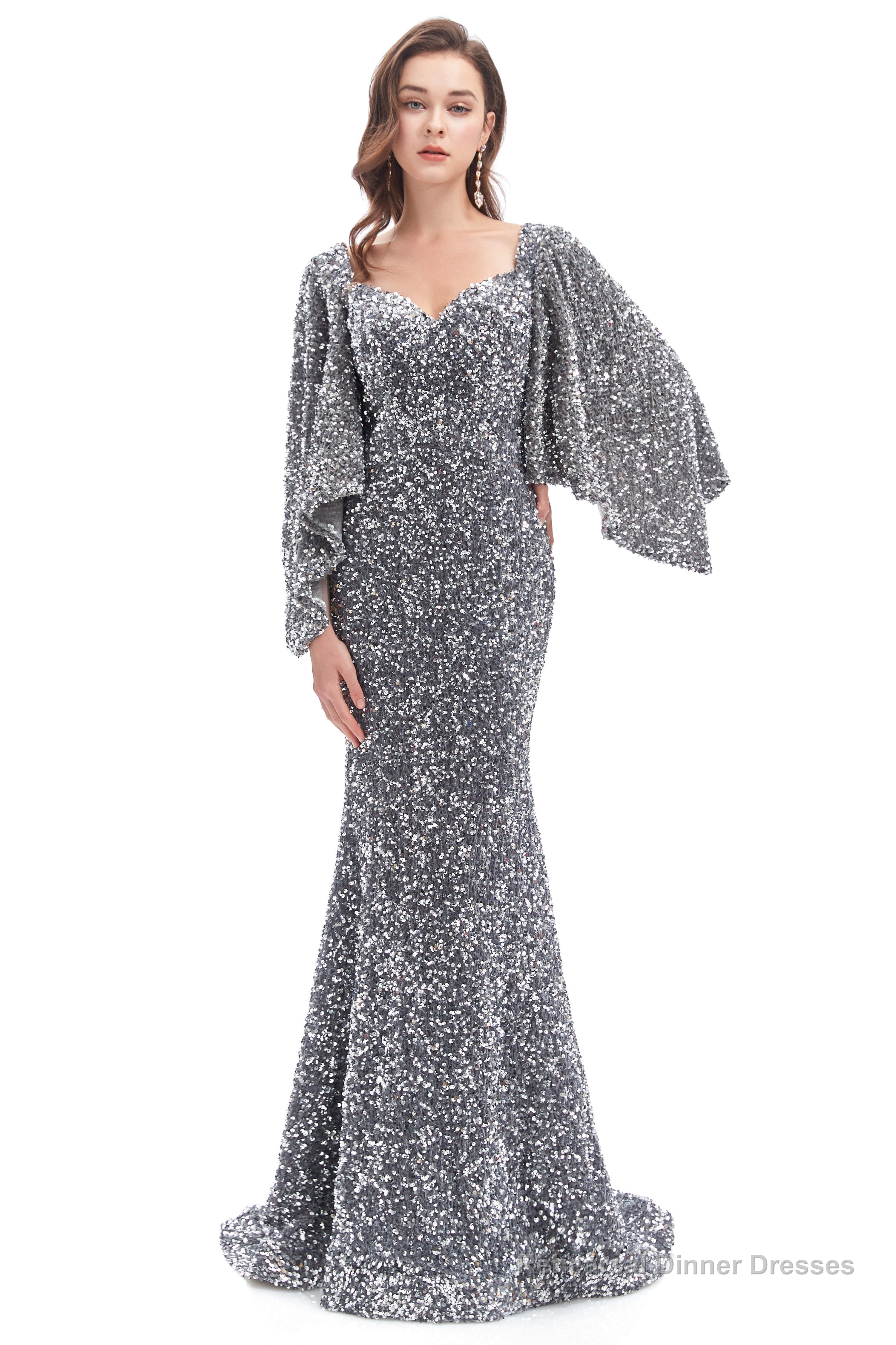 V-Neck Sequins Mermaid Prom Dresses with Sleeves