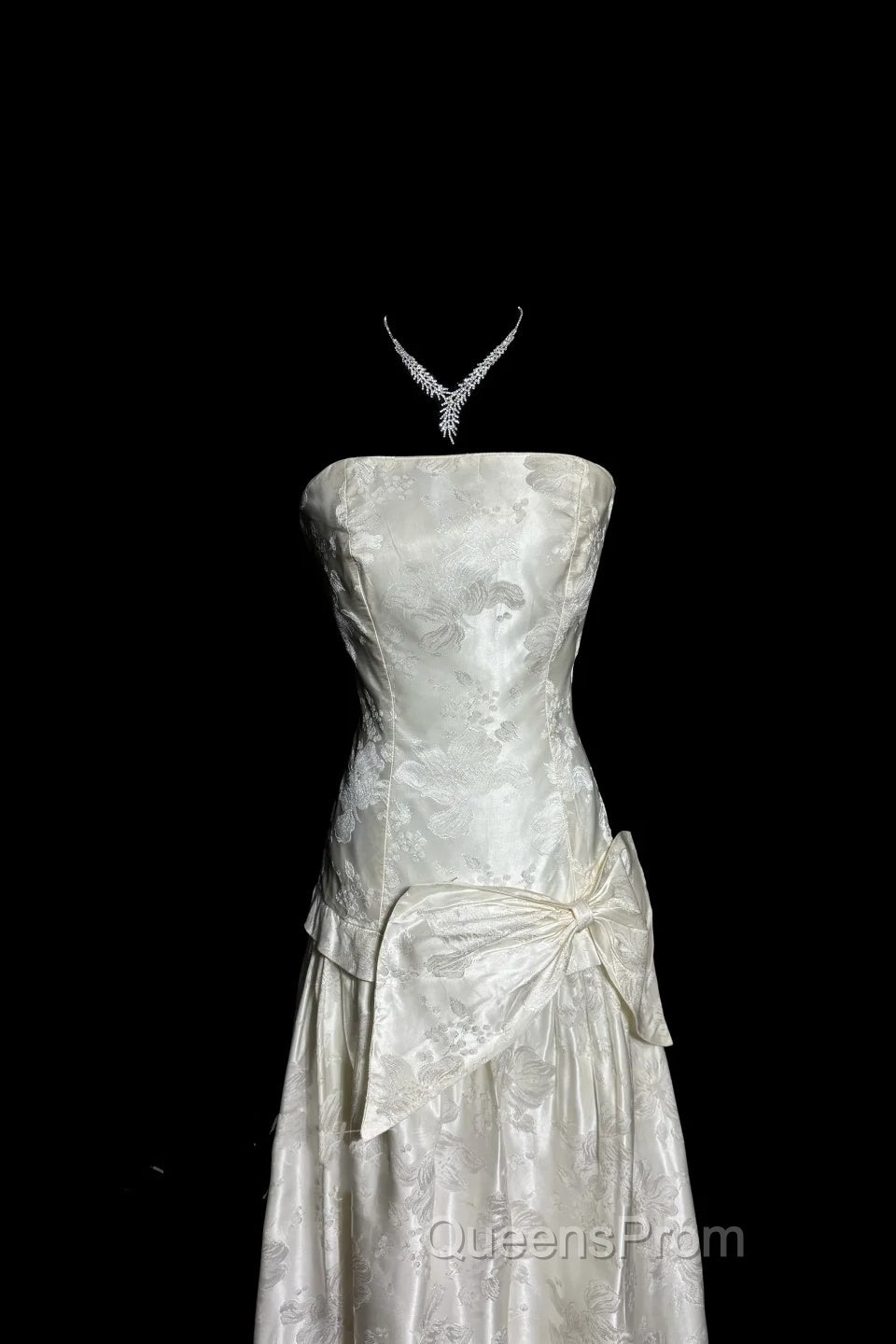 Vintage A Line Strapless White Lace Evening Prom Gown Fairy Evening Prom Dress
