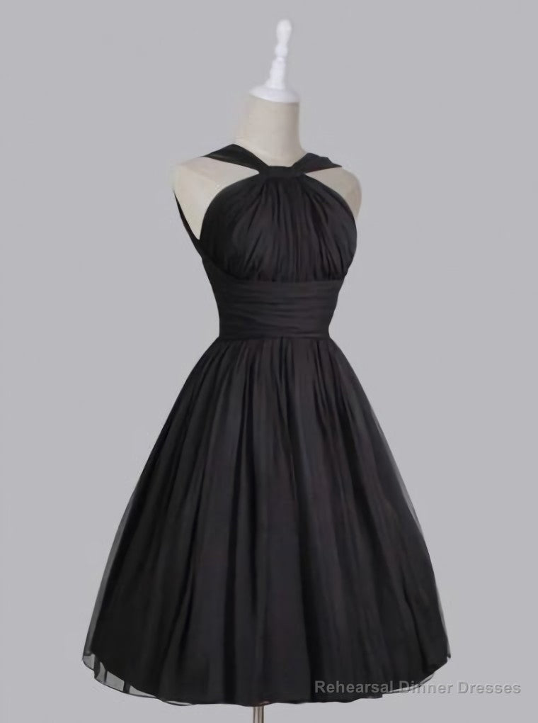 Vintage A Line Straps Knee Length Chiffon Sash Backless Black Party Homecoming Dresses