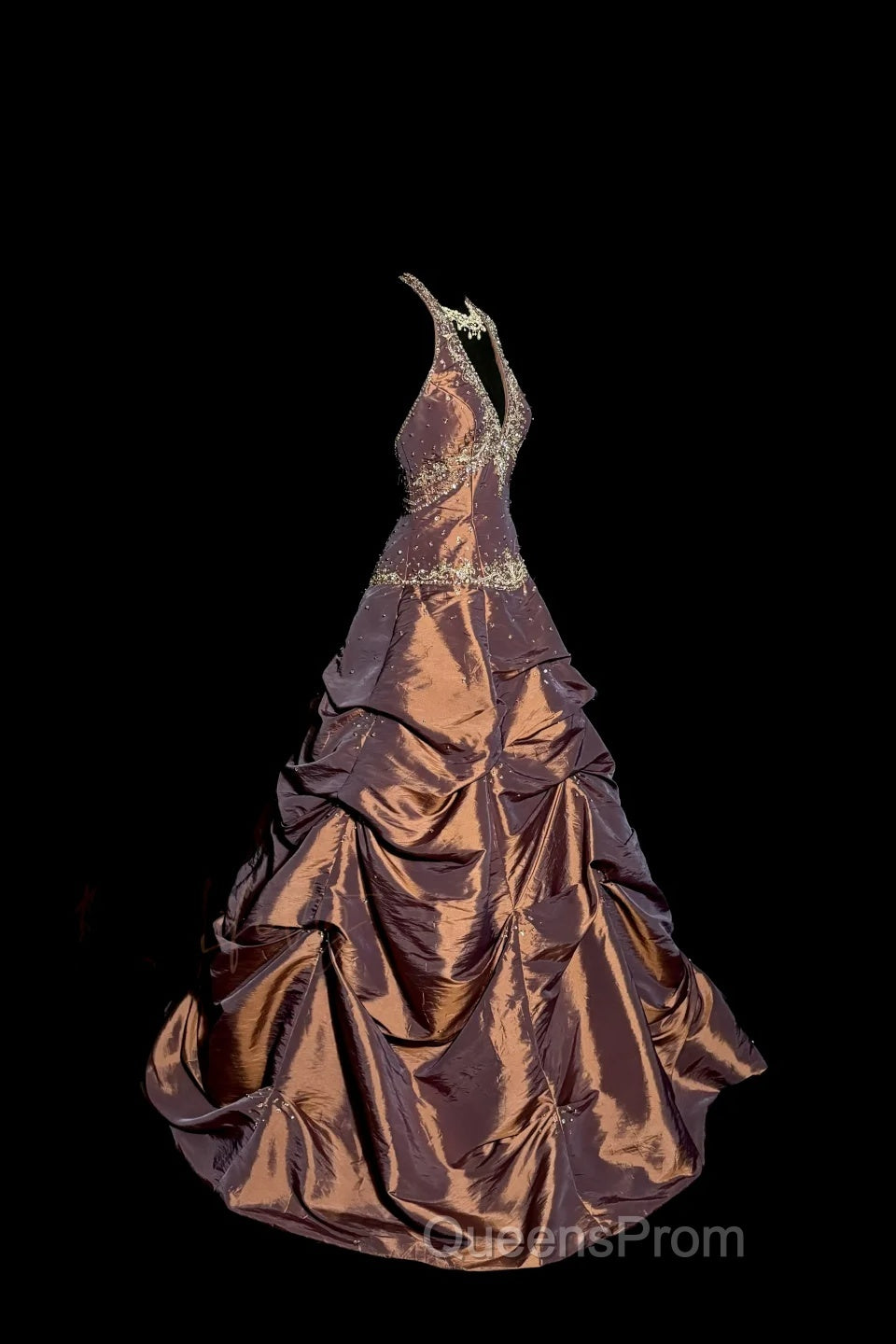 Vintage Ball Gown Halter Brown Sleeveless Long Evening Prom Gown Fairy Evening Prom Dress