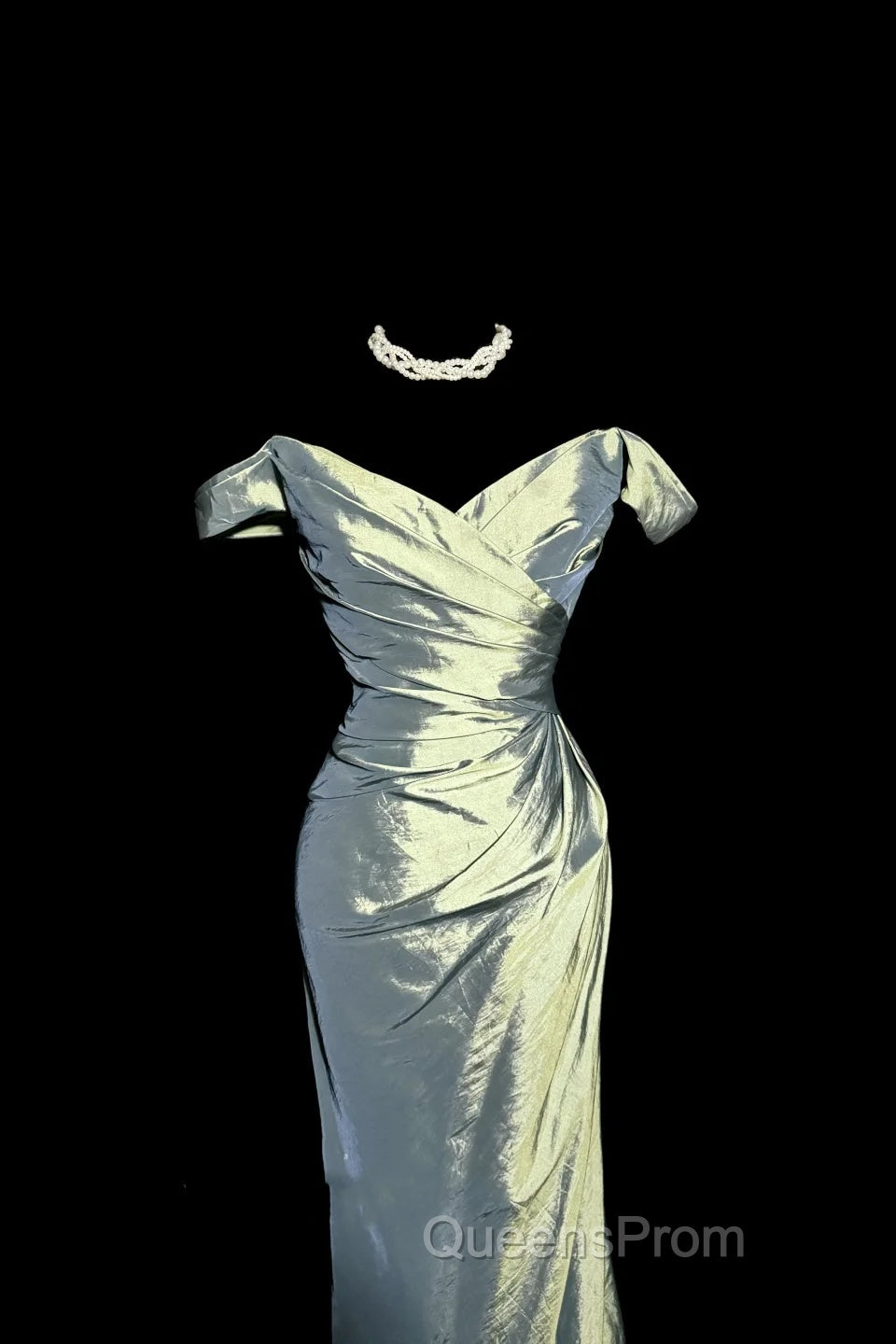 Vintage Mermaid Off The Shoulder Green Long Evening Prom Gown Fairy Evening Prom Dress
