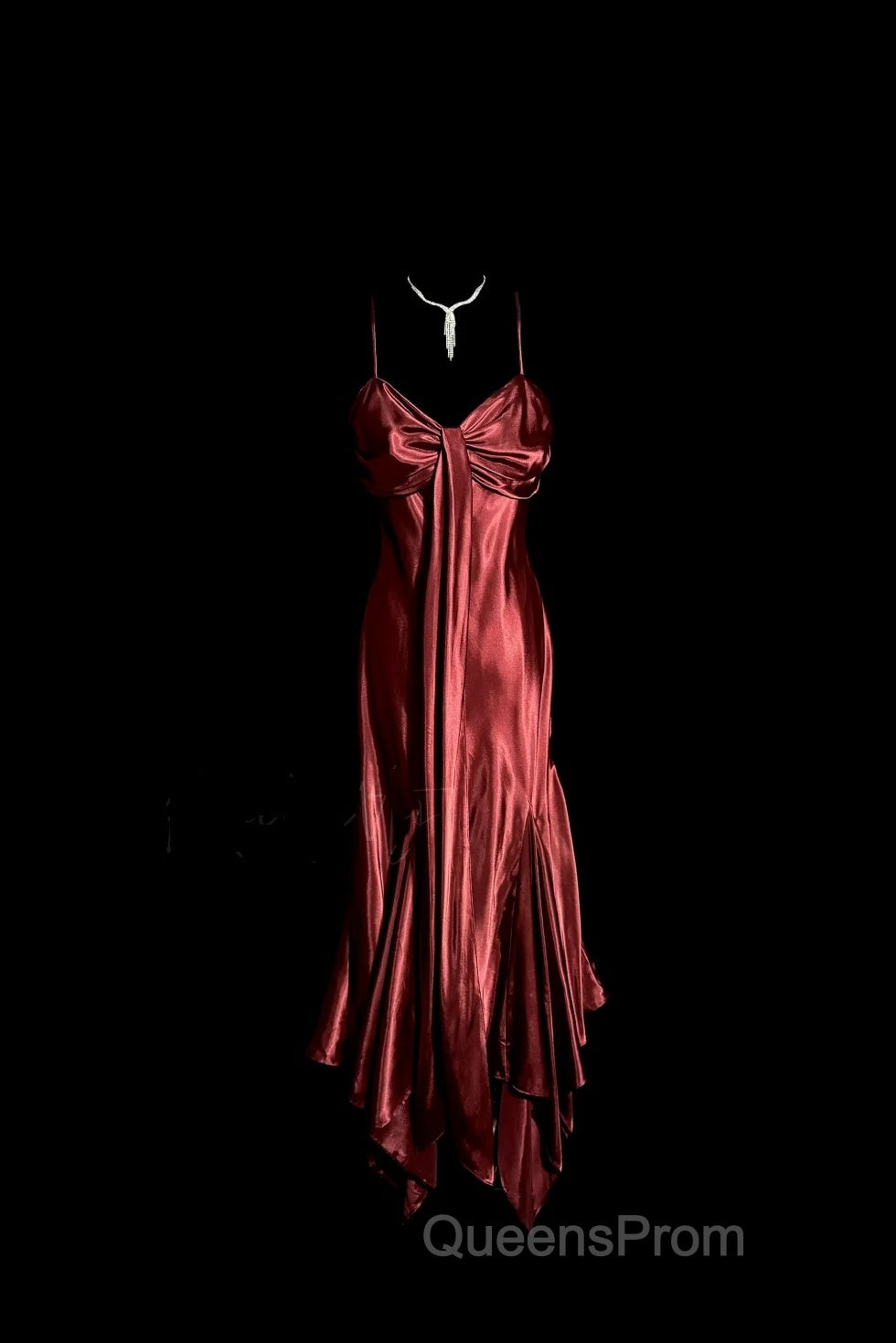 Vintage Mermaid Spaghetti Straps Satin Burgundy Evening Prom Gown Fairy Evening Prom Dress