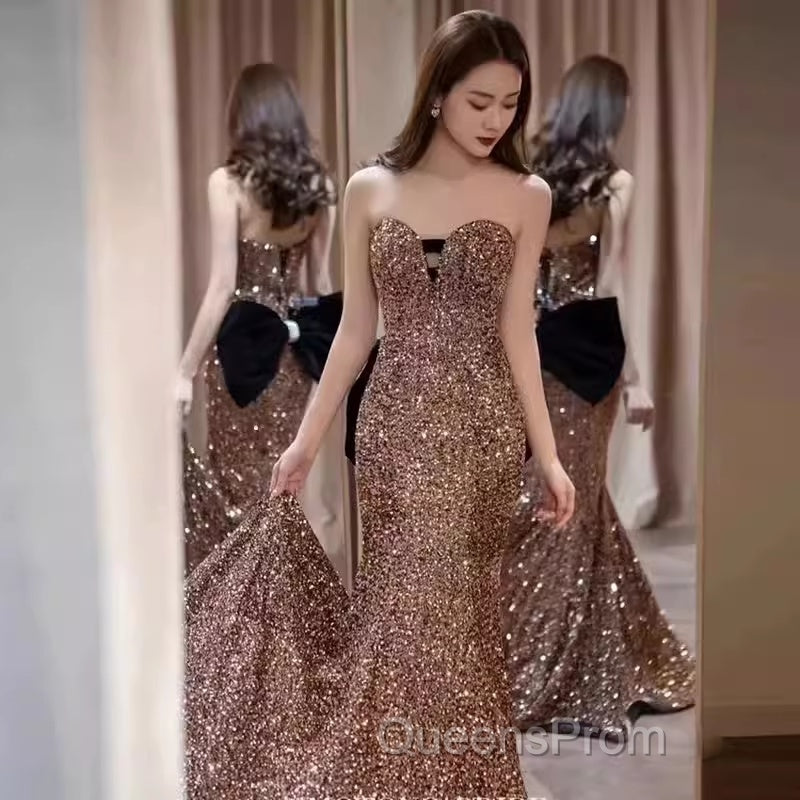Vintage Mermaid Strapless Party Dress Long Sequin Evening Prom Dress