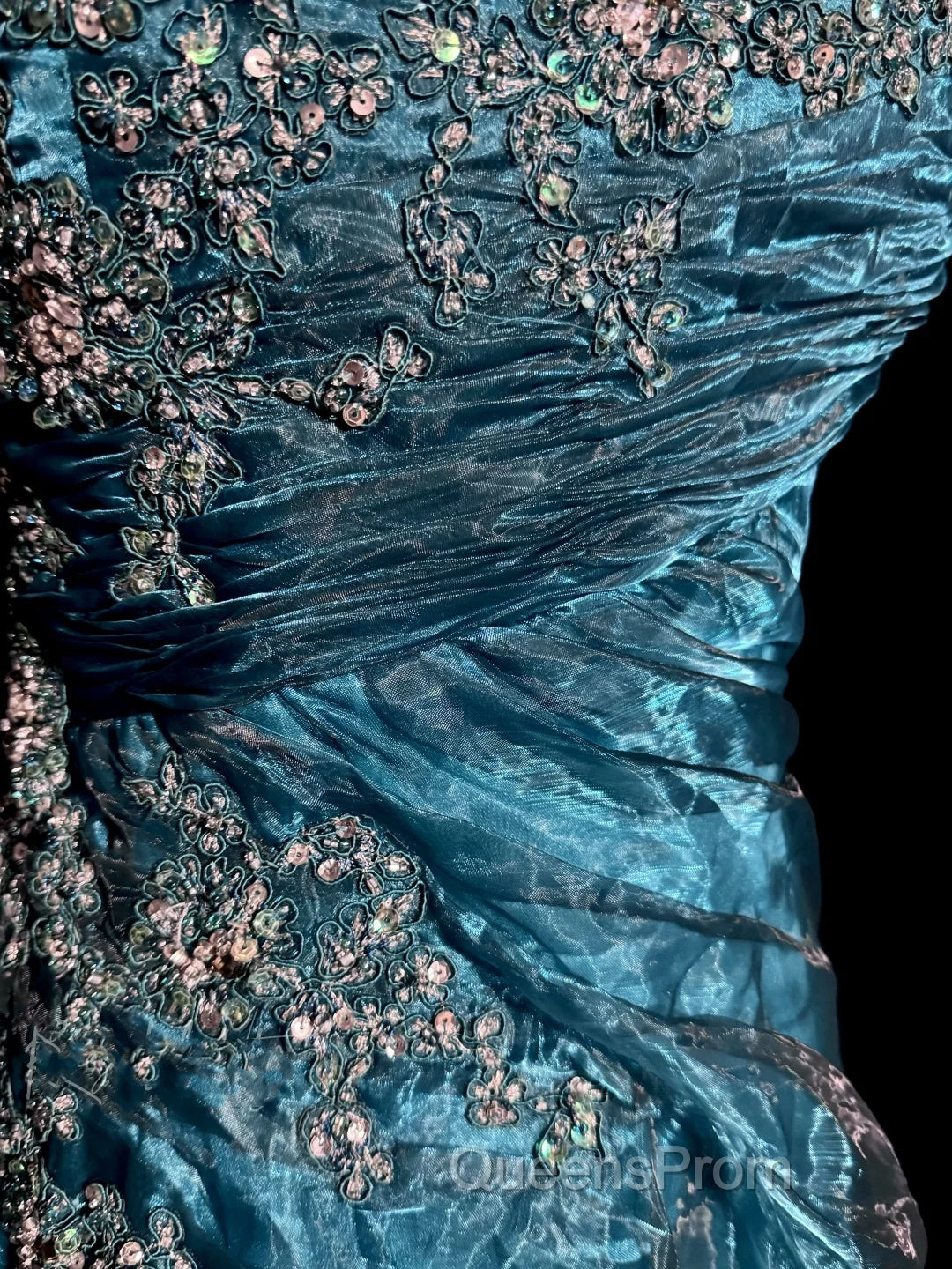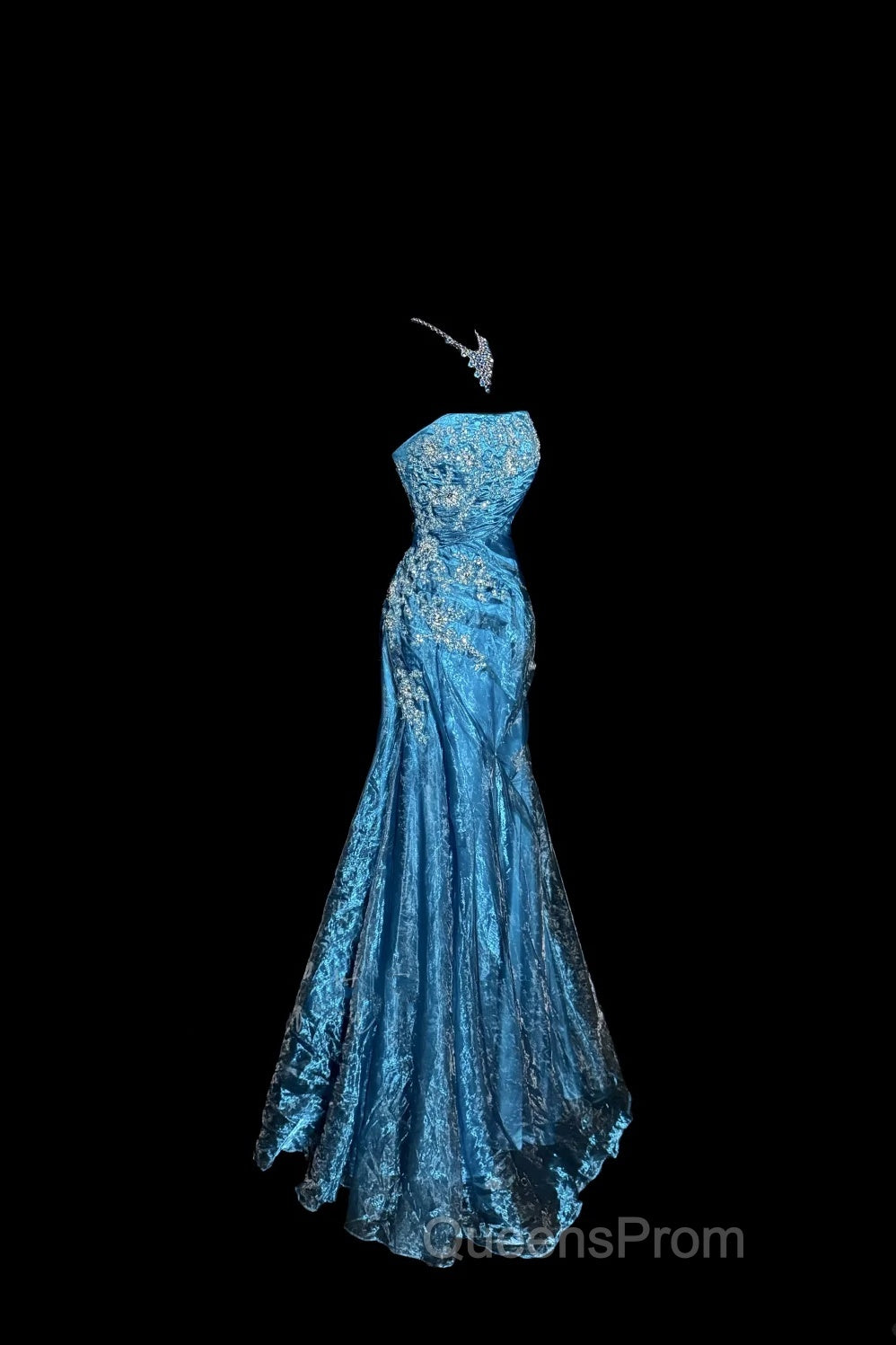 Vintage Mermaid Strapless Tulle Blue Long Evening Prom Gown Fairy Evening Prom Dress
