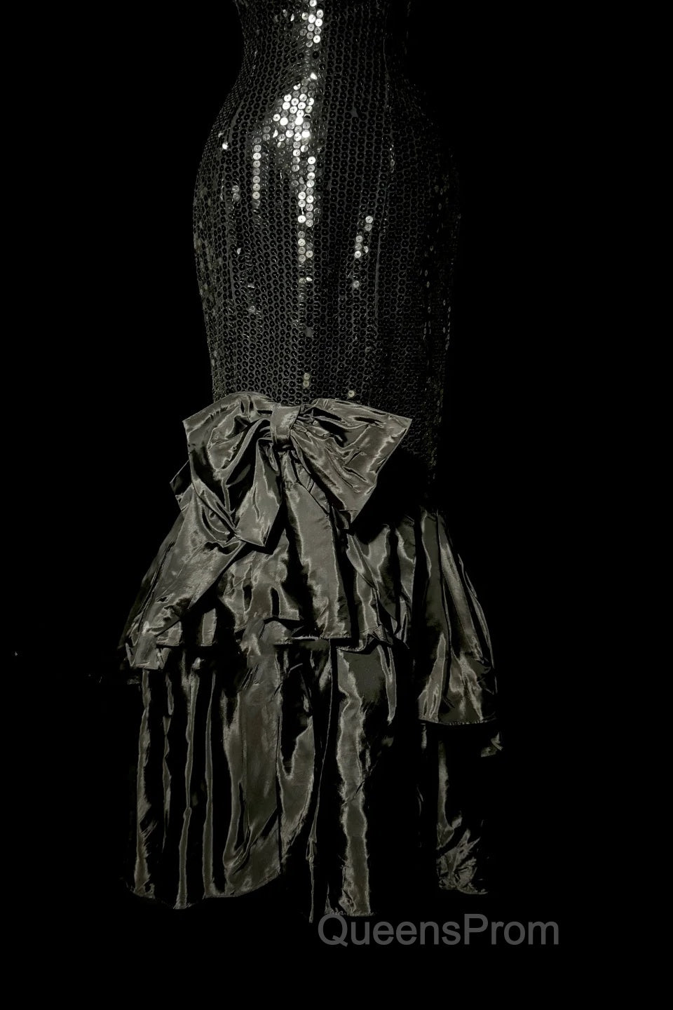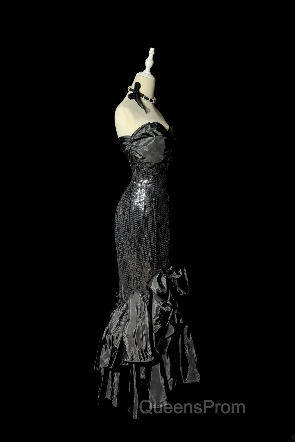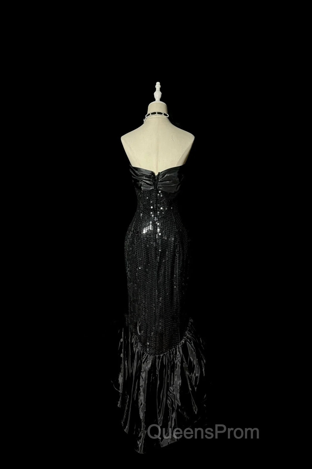 Vintage Mermaid Sweetheart Black Sequin Long Evening Prom Gown Fairy Evening Prom Dress