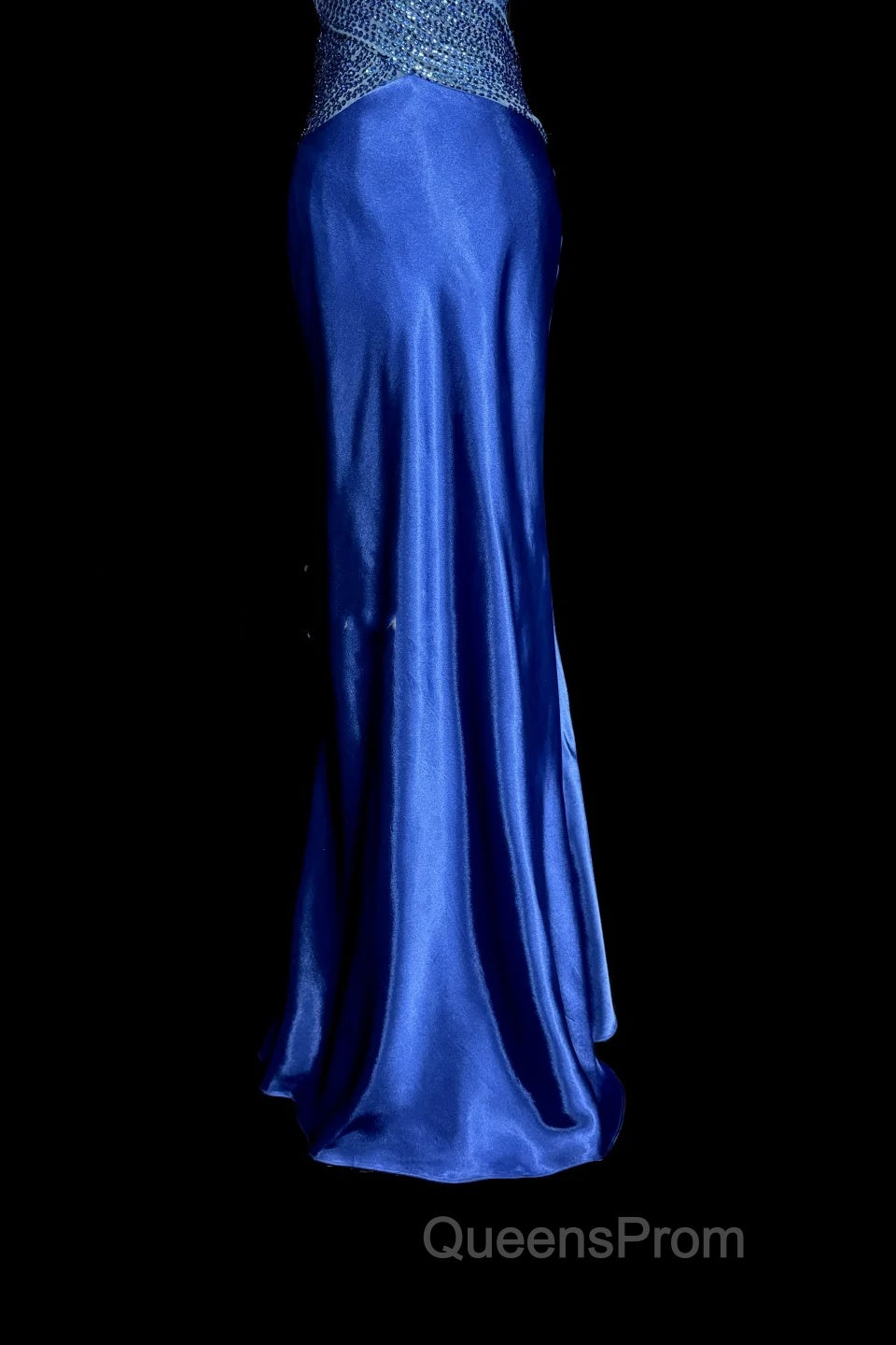 Vintage Mermaid Sweetheart Neckline Royal Blue Satin Backless Evening Prom Gown Fairy Evening Prom Dress