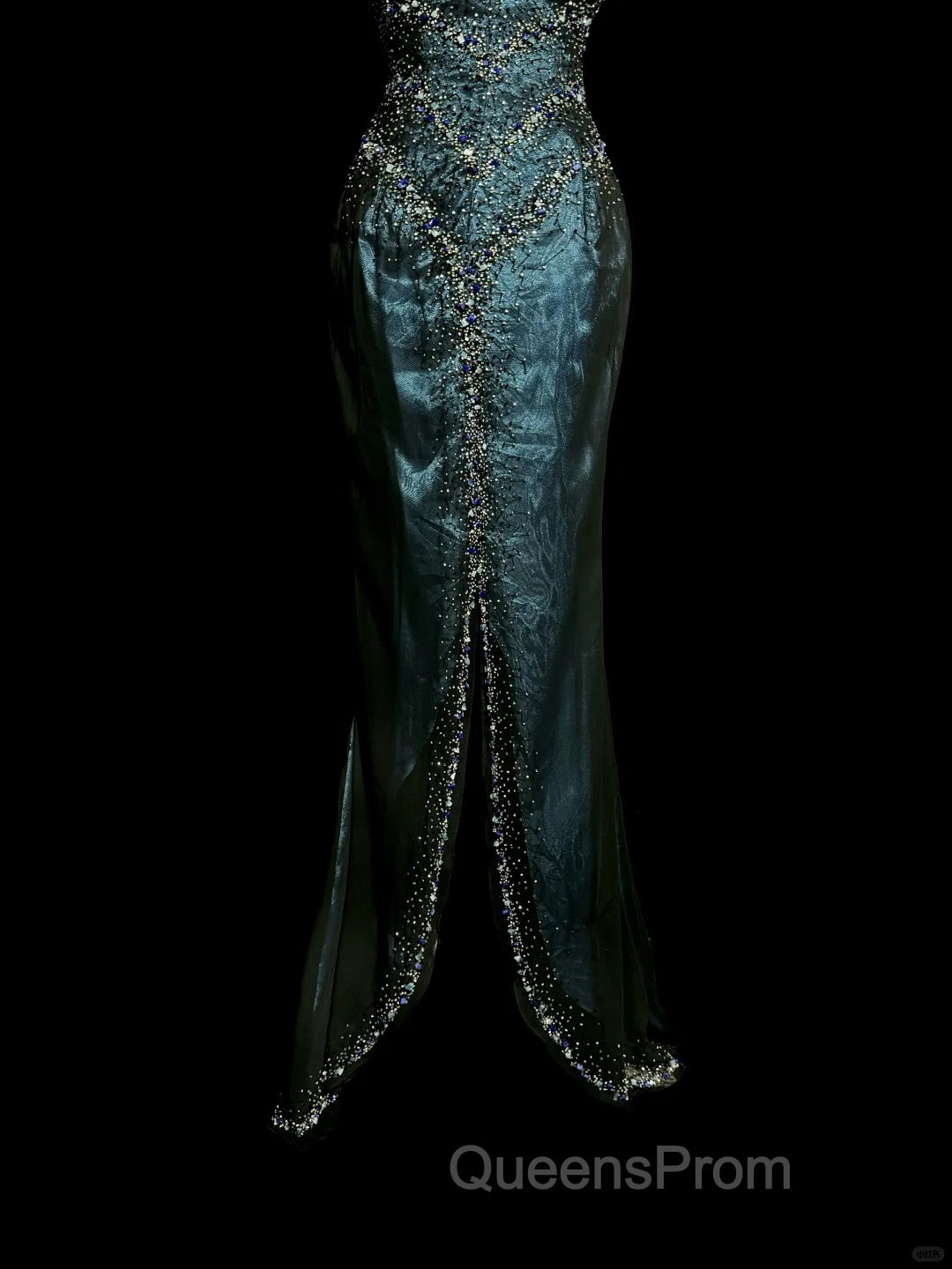 Vintage Mermaid Sweetheart Sleeveless Long Blue Slit Evening Prom Gown Fairy Evening Prom Dress