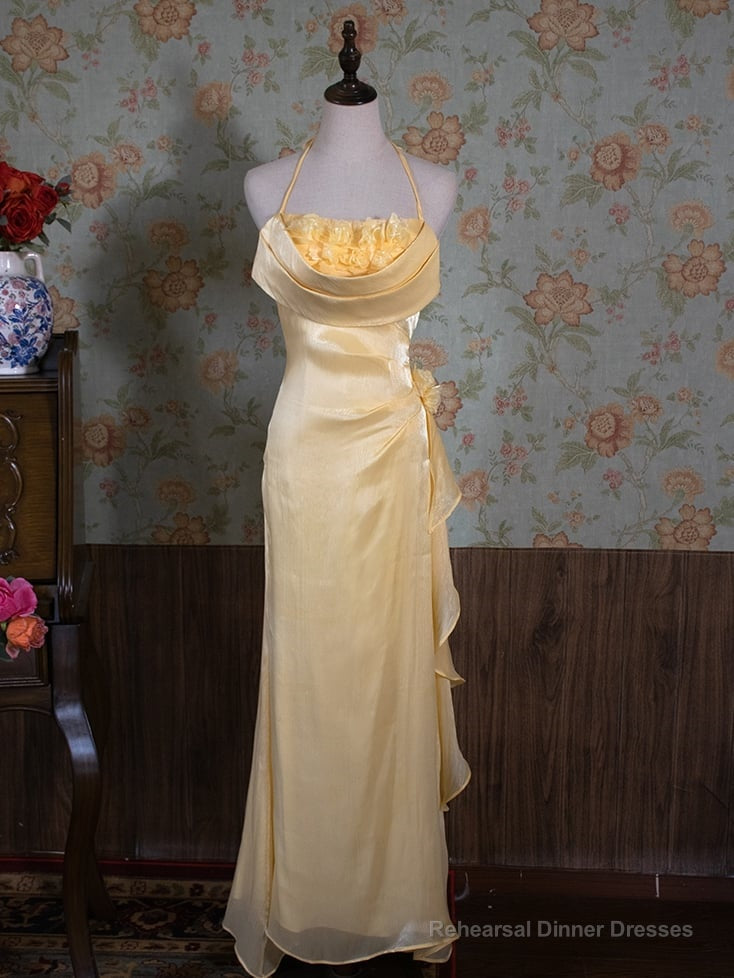 Vintage Yellow Halter Neck Floral Prom Gown Fairy Princess Dress