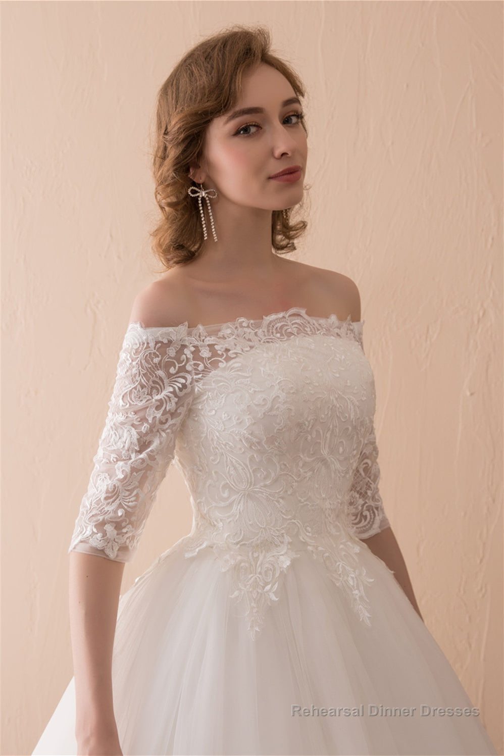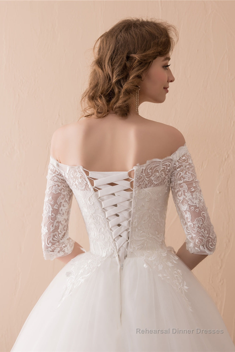 White Lace Long Sleeves Off Shoulder Strapless A Line Floor Length Wedding Dresses