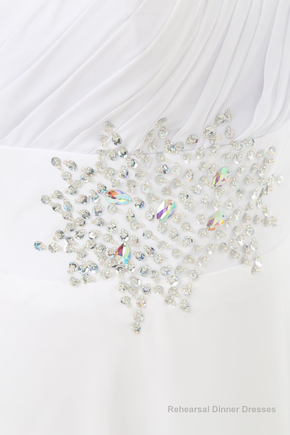 White One Shoulder Chiffon Pleats Beading Bridesmaid Dresses