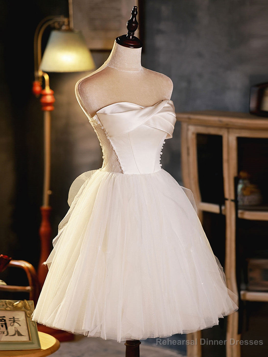 White Sweetheart Neck Tulle Short Prom Dress, Light Champagne Homecoming Dress