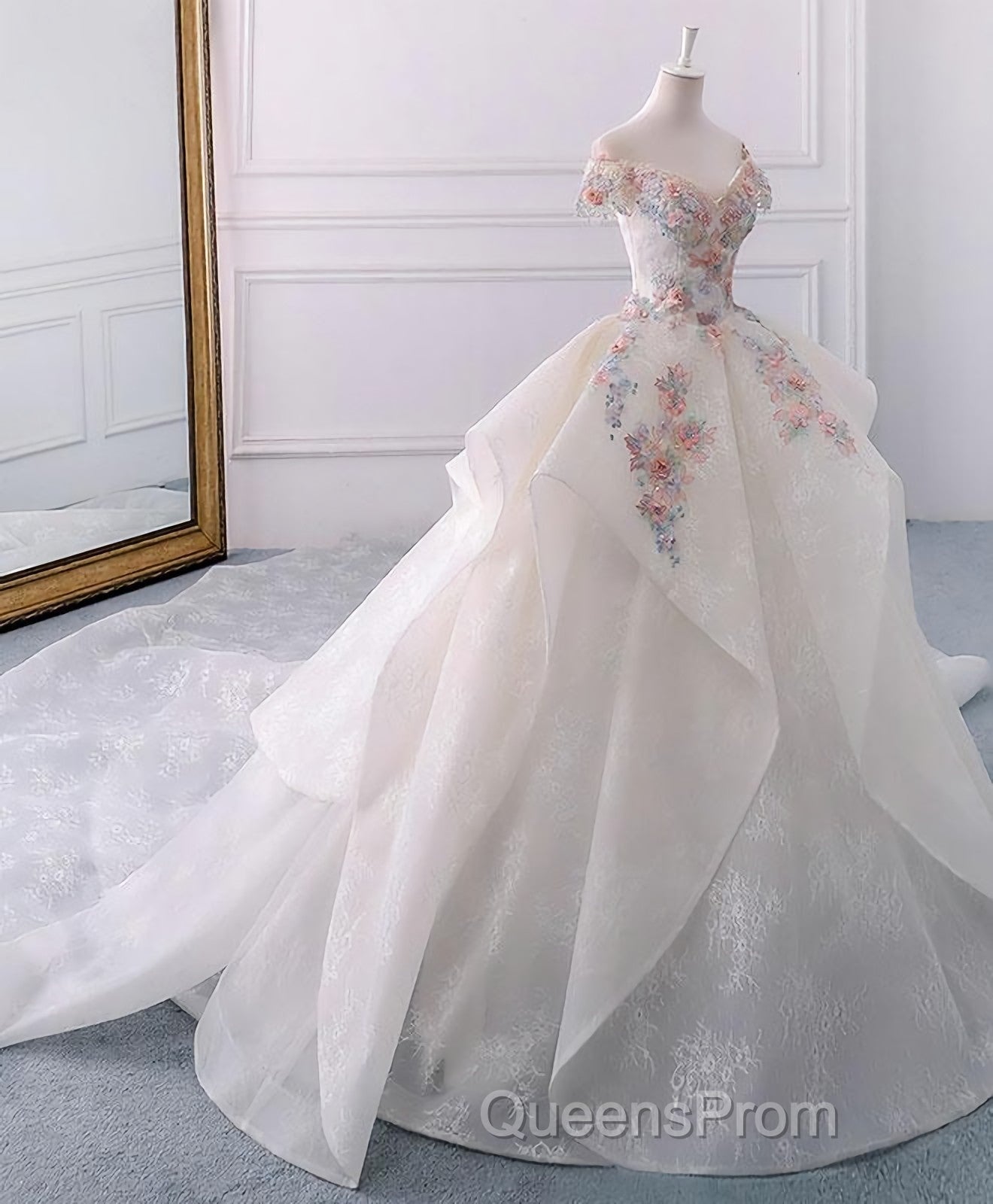 White Sweetheart Off Shoulder Lace Long Evening Prom Dress, White Evening Dress