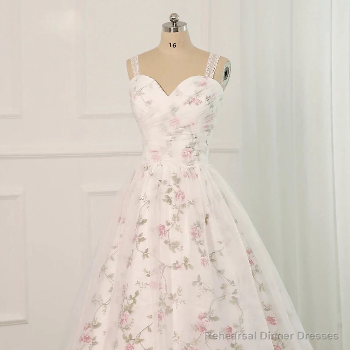 White Tulle and Floral Long Straps Formal Gown Beautiful White Party Dress prom dresses shops