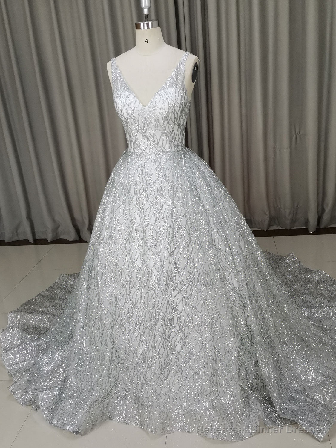 White V Neck Sequin Tulle Long Prom Dress White Tulle Evening Dress
