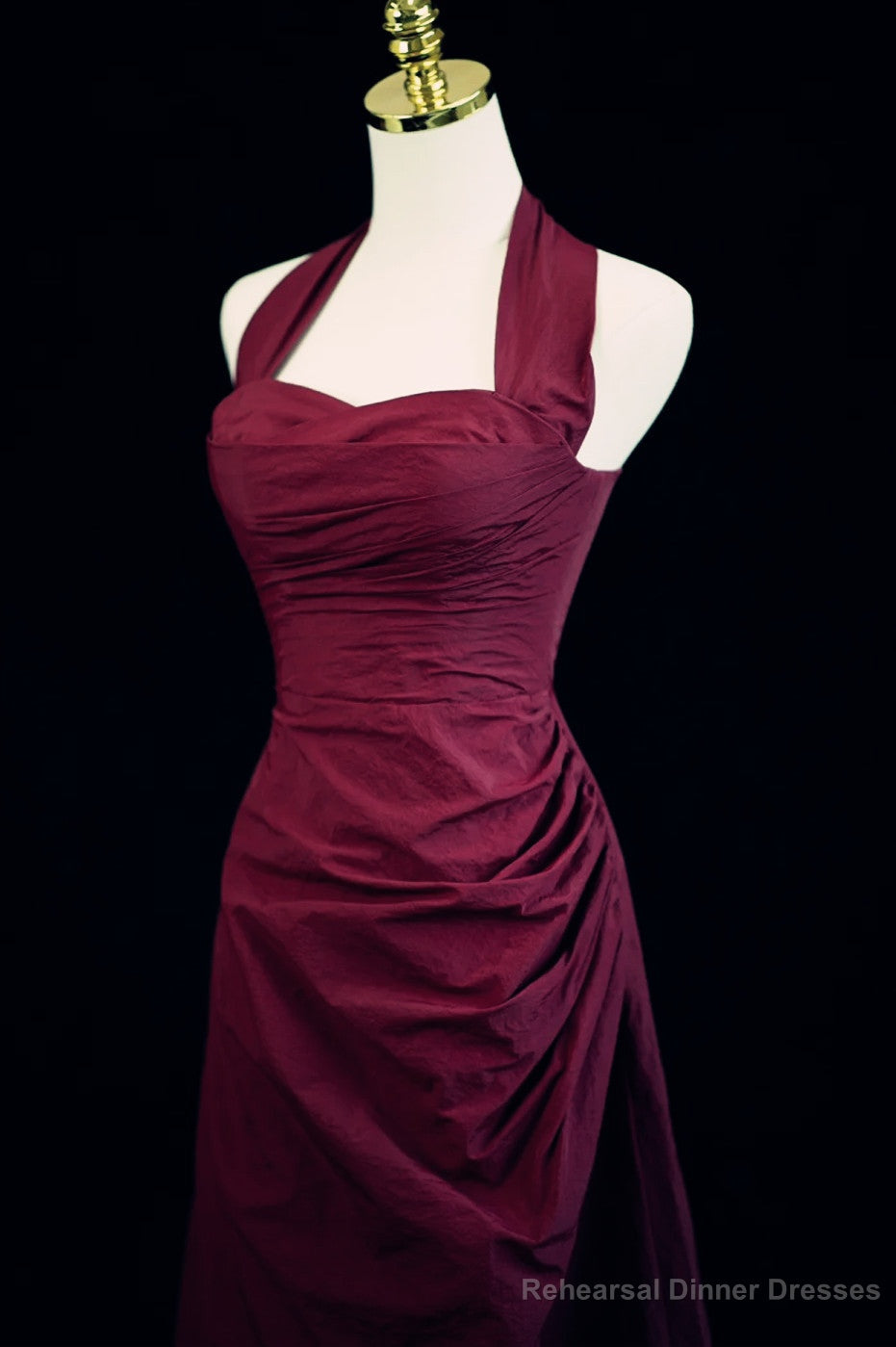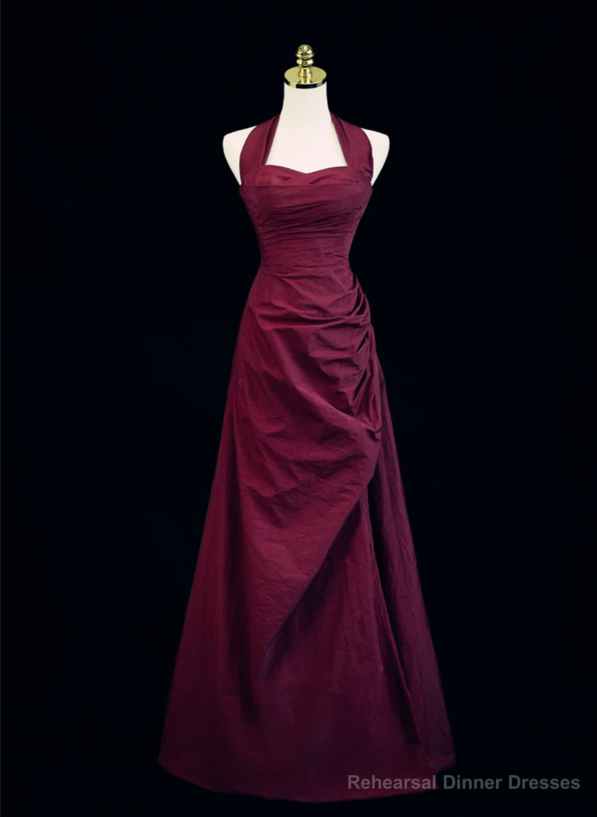 Wine Red A-Line Halter Vintage Style Prom Dress, Wine Red Long Evening Dress