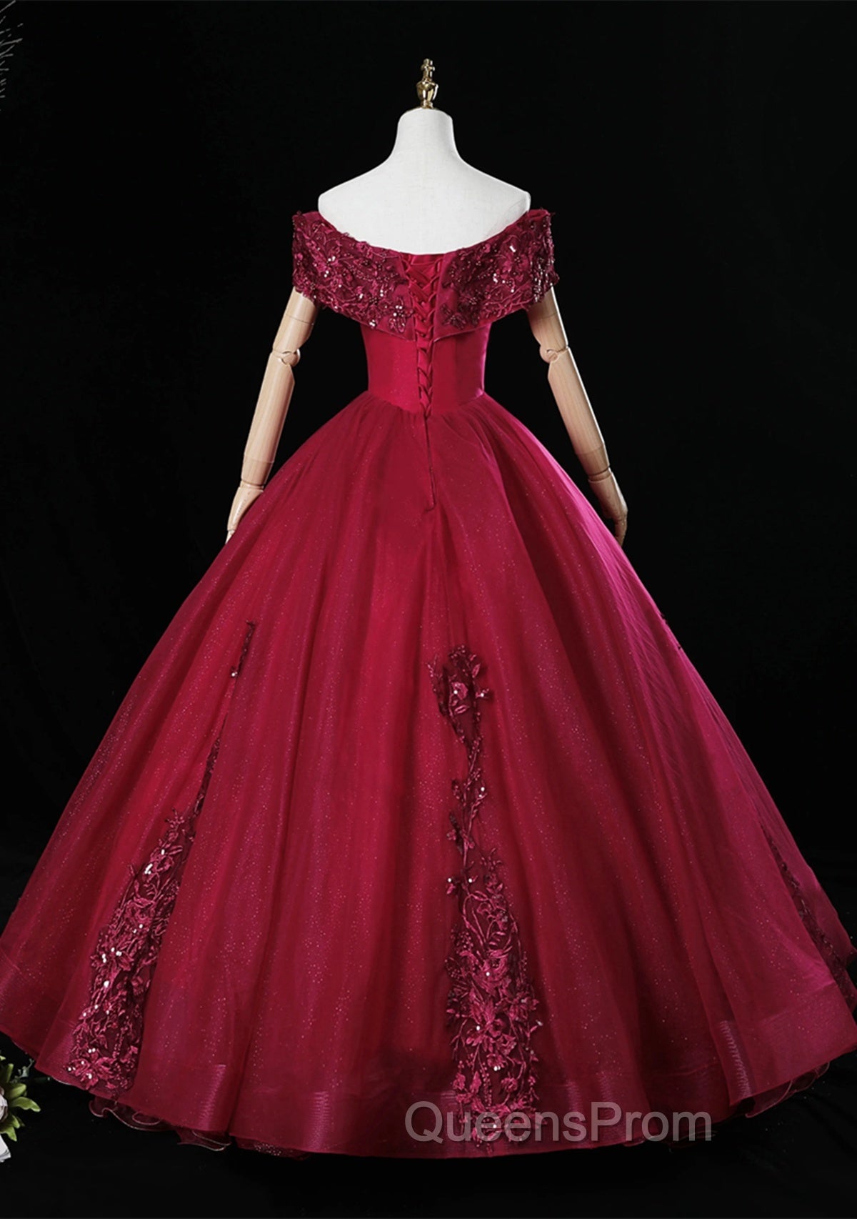 Wine Red Ball Gown Sweetheart Off Shoulder Long Party Dress, Wine Red Sweet 16 Dress