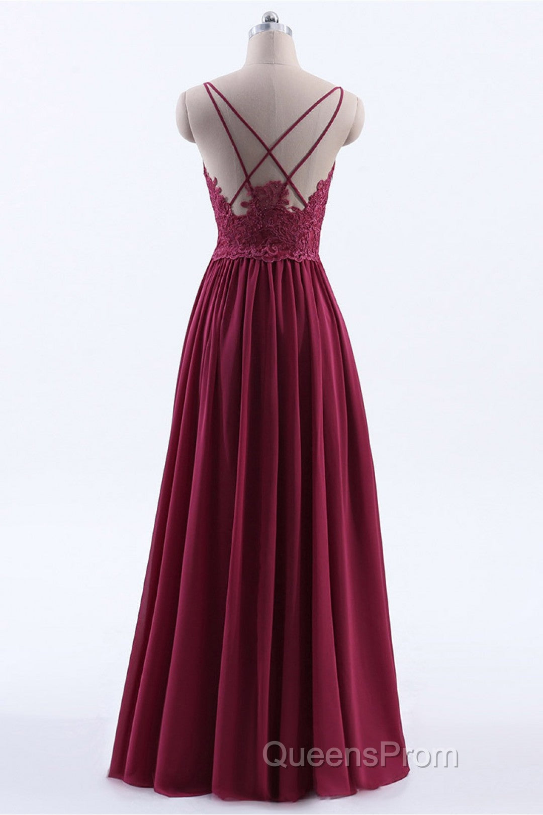 Wine Red Chiffon A-line Long Pleated Bridesmaid Dress