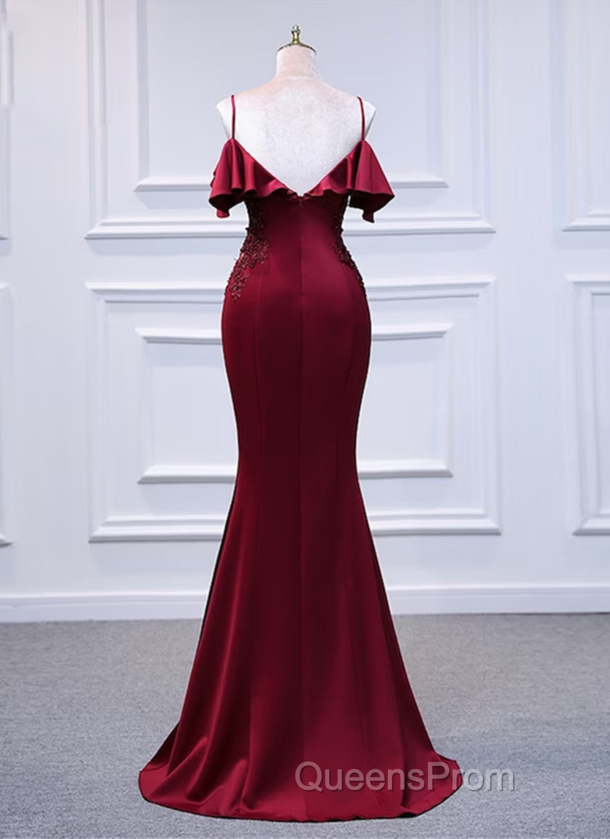 Wine Red Mermaid Sweetheart Straps Long Formal Dress, Wine Red Evening Prom Dress