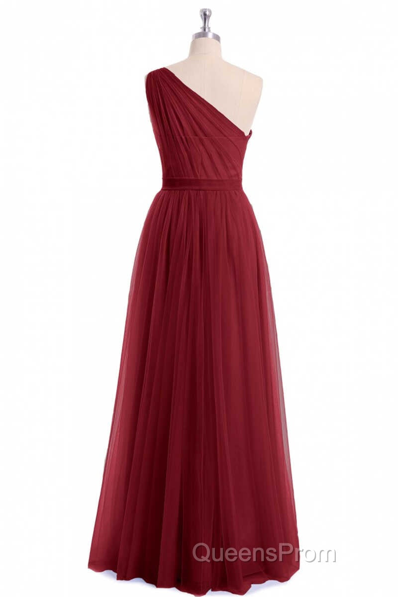 Wine Red Tulle One-Shoulder A-Line Bridesmaid Dress