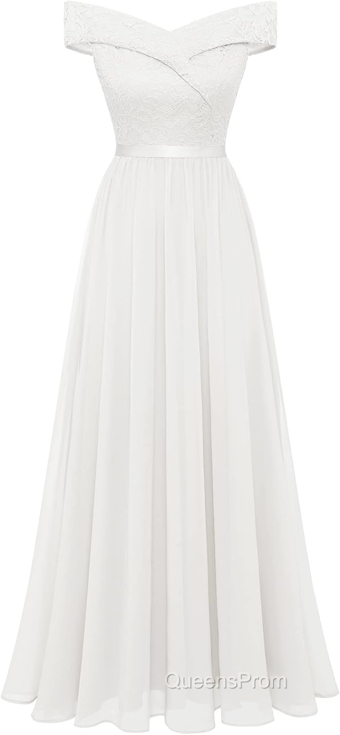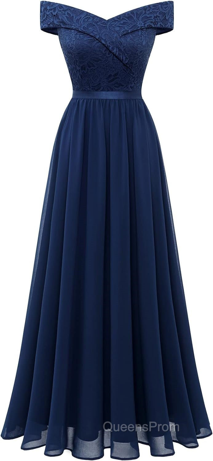 Womens Lace Bridesmaid Dress A-Line Off Shoulder Floral Lace Chiffon Evening Prom Dress