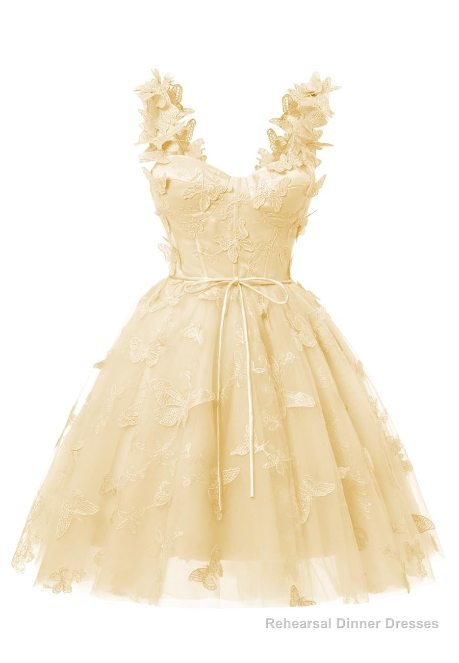 Yellow 3D Butterfly Lace Applique Tulle Homecoming Dress for Teens Sweetheart Mini Short Prom Dresses